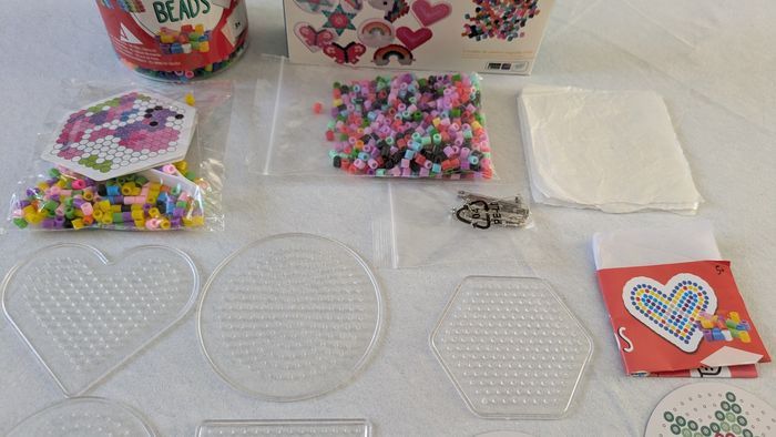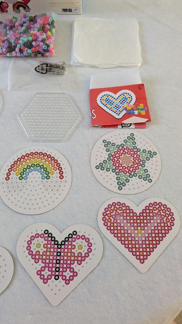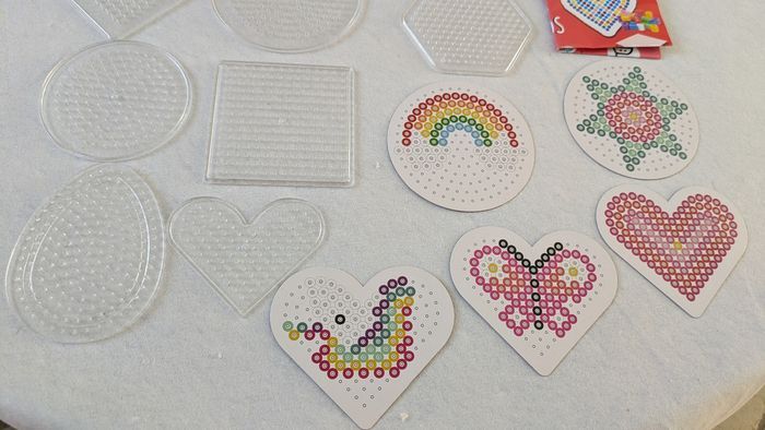 Bonjour, Vends lot de perles à repasser avec différents modèles de plaques et de création , feuilles de papier pour repasser les perles et petites broches pour les créations ( boîte Créalia ), en très bon état . A partir de 6 ans .