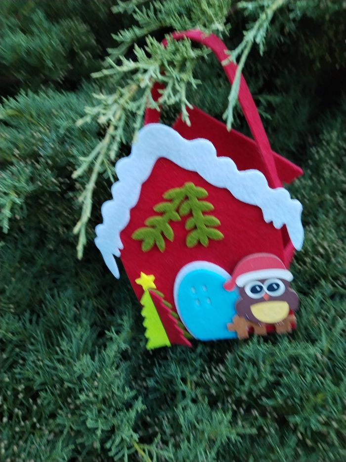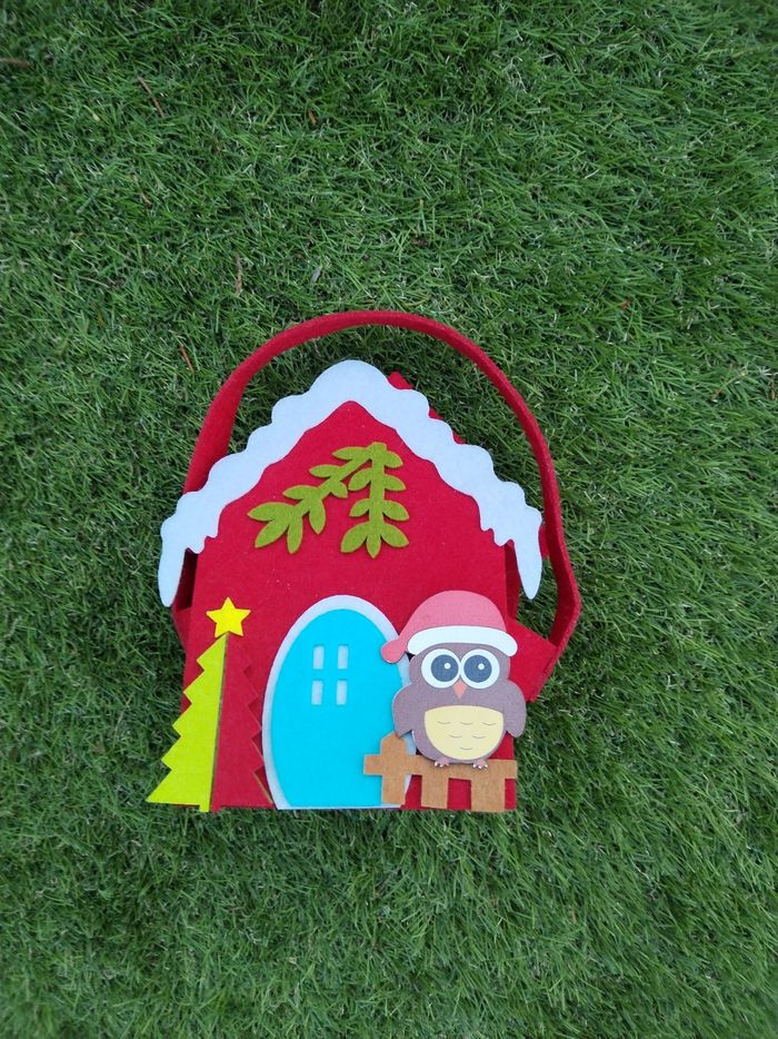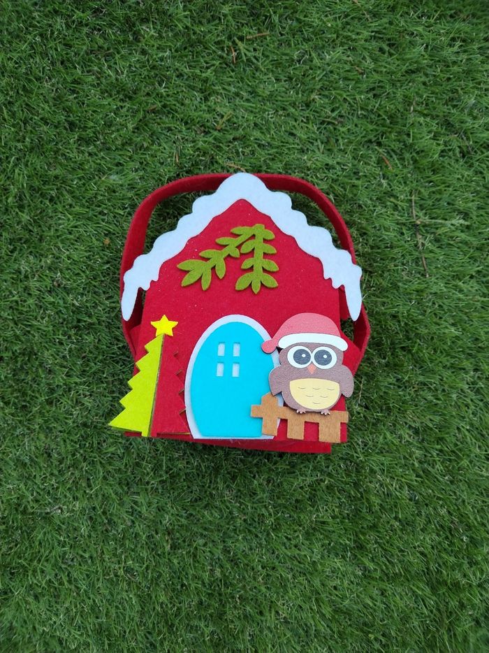 Panier pour cadeau de Noël, env 12 x 18 x 7 cm, en feutrine 🎄🎅 jolie applique "Hibou" en bois dans un décor de. hiver, facile à porter pour les enfants grâce à la petite anse, ou à suspendre au sapin 🎄🌲 parfait pour y glisser des petits cadeaux, gourmandises, jouets, maquillage etc 🎄 🎁 🎀 pensez à profiter de la réduction sur les lots avec d'autres modèles disponibles 👍 🎄 🎅