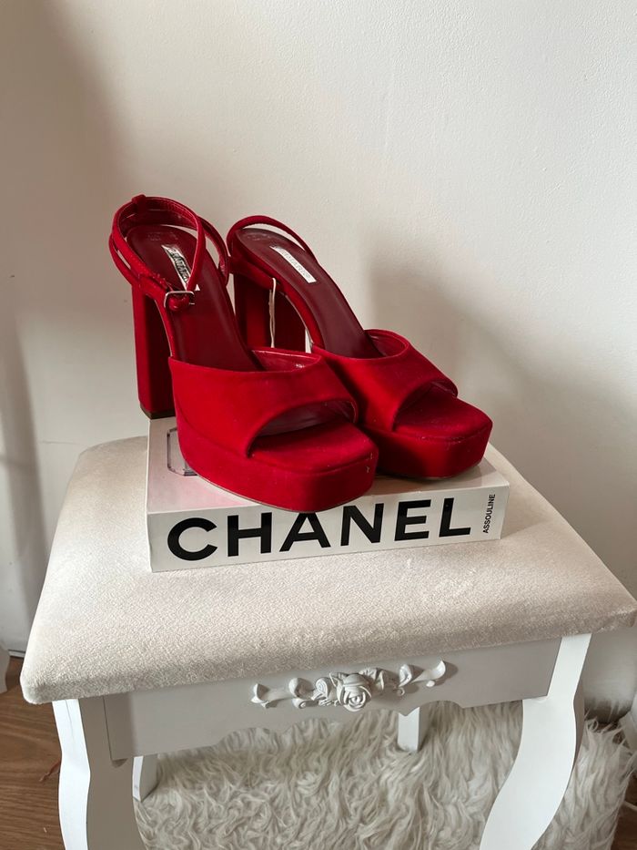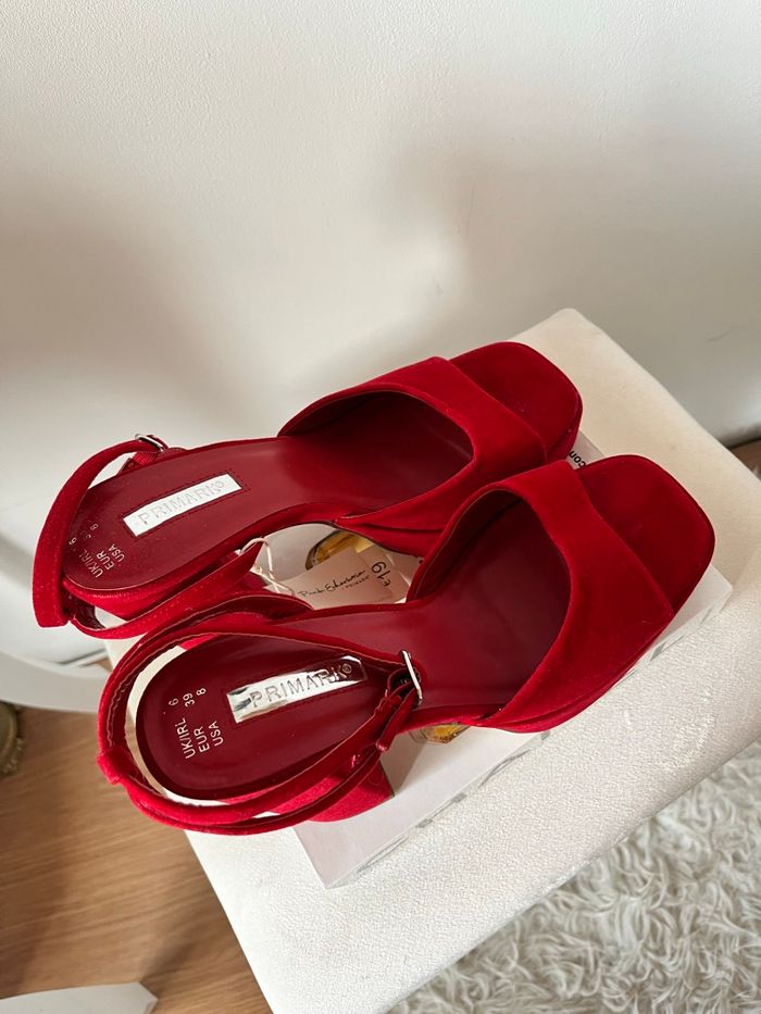 Sandales ouvertes plate-forme suédine rouge Primark T39 BE 👡 - photo numéro 3