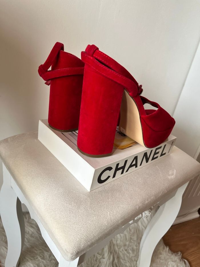 Sandales ouvertes plate-forme suédine rouge Primark T39 BE 👡 - photo numéro 4