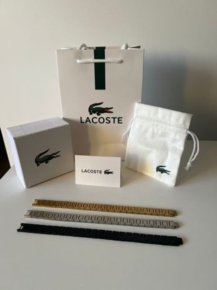 Gourmette Lacoste argenté, doré ou noir homme Neuf avec étiquette et tout inclus (boîte , sac etc ) Cadeau de Noël Prix à l’unité !!!