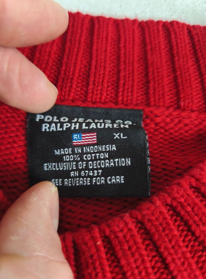 Pull vintage Polo Ralph Lauren flag femme – Taille XL rouge vif - photo numéro 10
