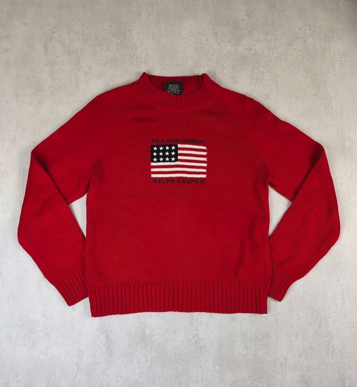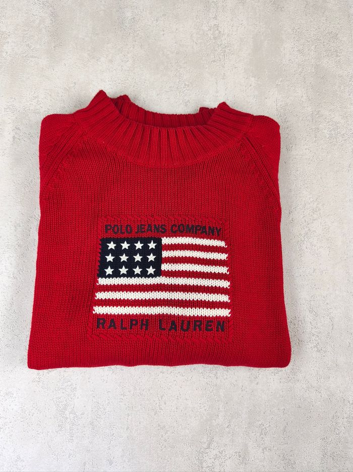 Pull vintage Polo Ralph Lauren flag femme – Taille XL rouge vif - photo numéro 1