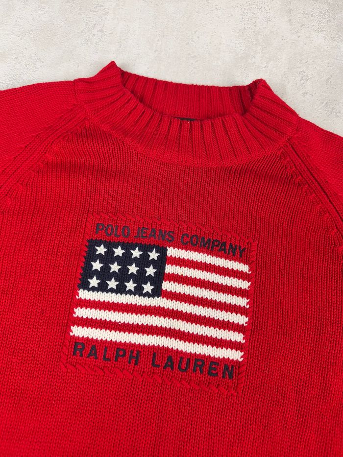 Pull vintage Polo Ralph Lauren flag femme – Taille XL rouge vif - photo numéro 2