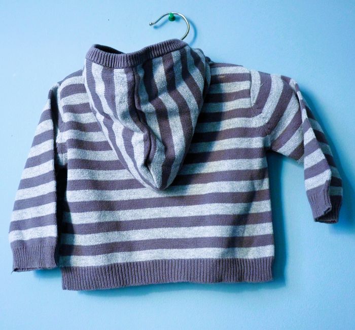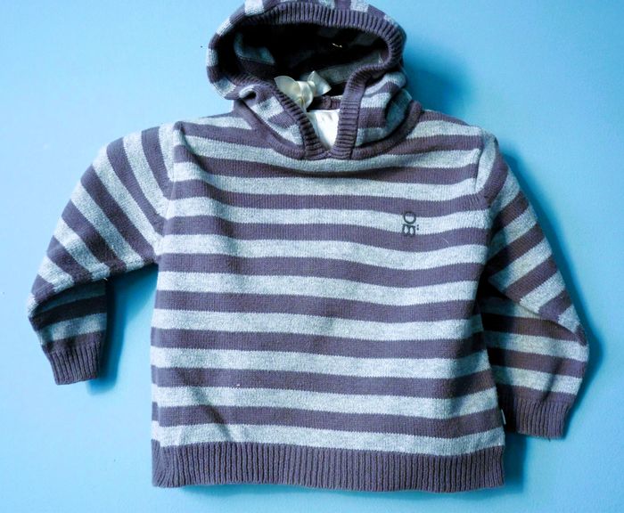 Pull bébé garçon Okaïdi 12 Mois gris sweat capuche rayé TBE