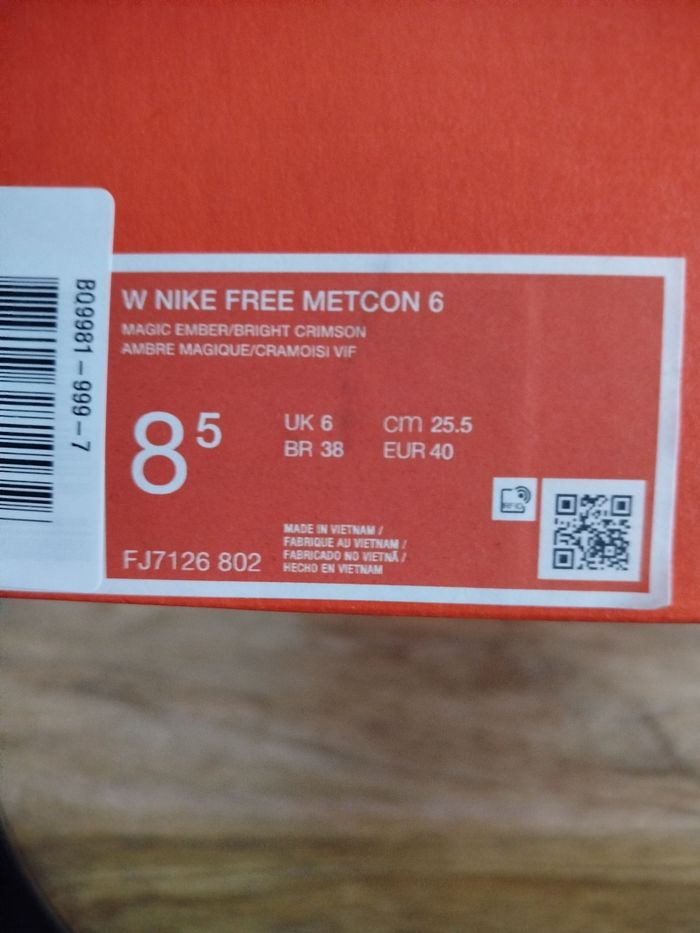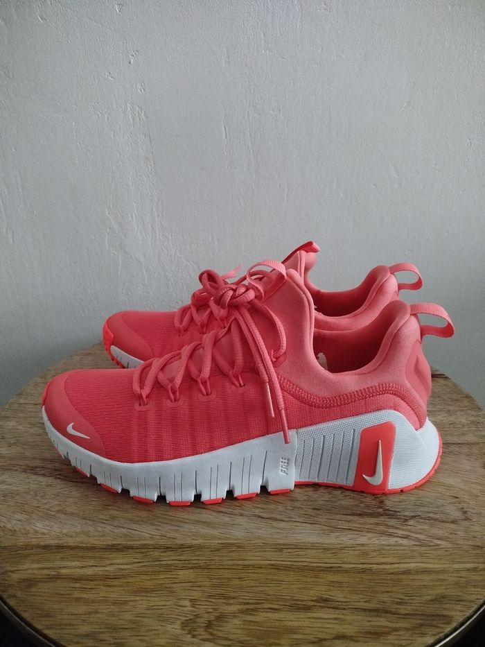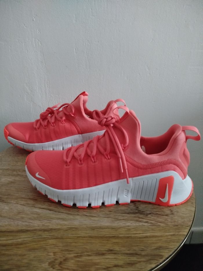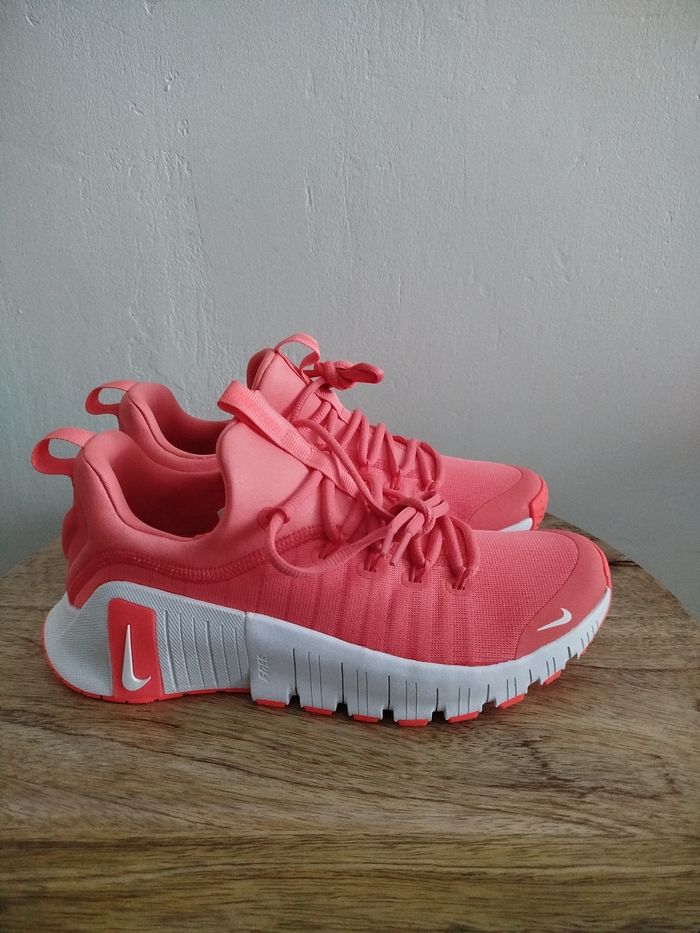 Je vends cette paire de baskets Nike. - Type de produit : Baskets - Univers : femme - Marque : Nike - Modèle : Metcon 6 - Pointure : 40 - Couleur : Rouge cramoisi vif - Etat : Neuf - Boite sans couvercle N'hésitez pas à me contacter pour plus d'informations ou de photos.