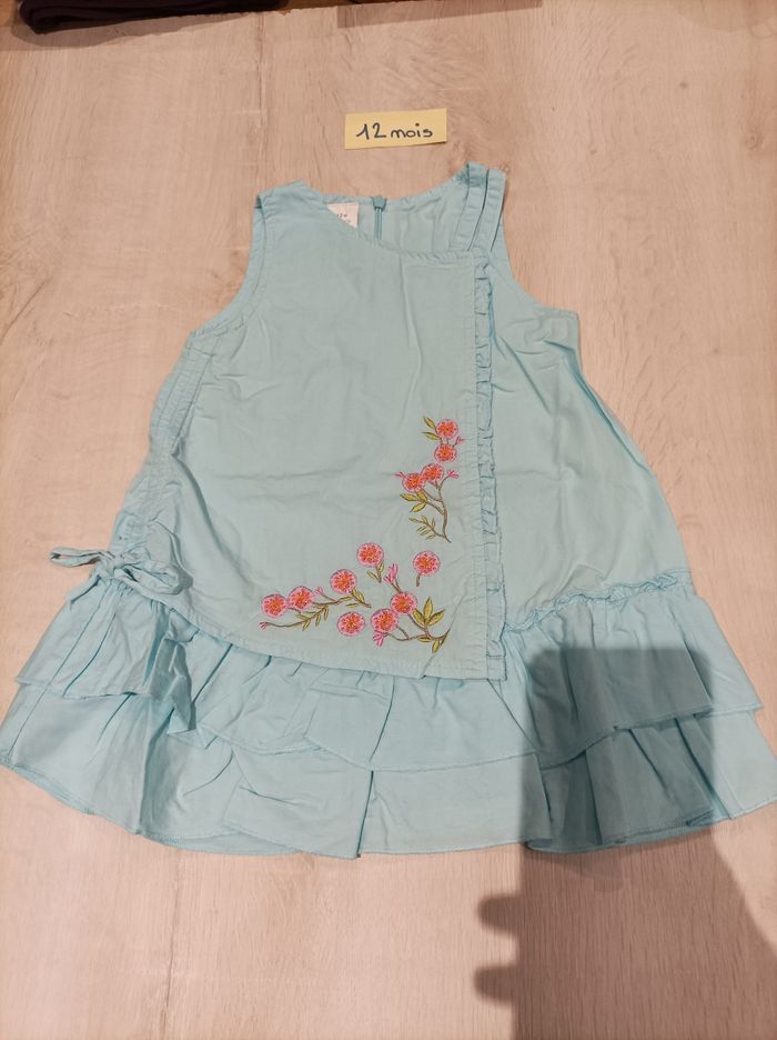 Lot de 19 vêtements fille taille 12 mois Pour été, printemps / automne Lot : 7 robes (certaines adaptables à temps plus frais), 2 vestes légères, 1 gilet, 2 culottes maillot de bain, 2 shorts, 1 salopette, 2 jupes et 1 ensemble minnie (ou pyjashort) Détails en photos, je n'ai pas pu tout mettre mais photos disponibles à la demande Le tout en très bon état. Différentes marques disney, kimbaloo, baby club, cadet rousselle, Influx, grain de blé, mini adelie... Envoi mondial relay