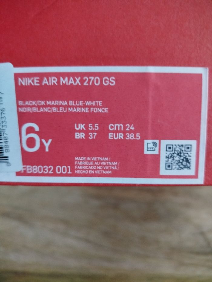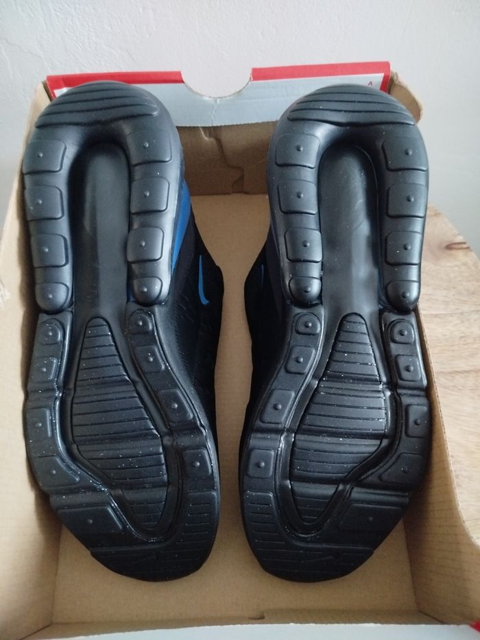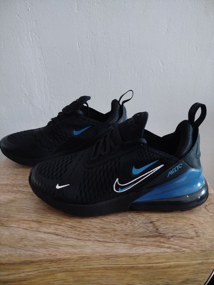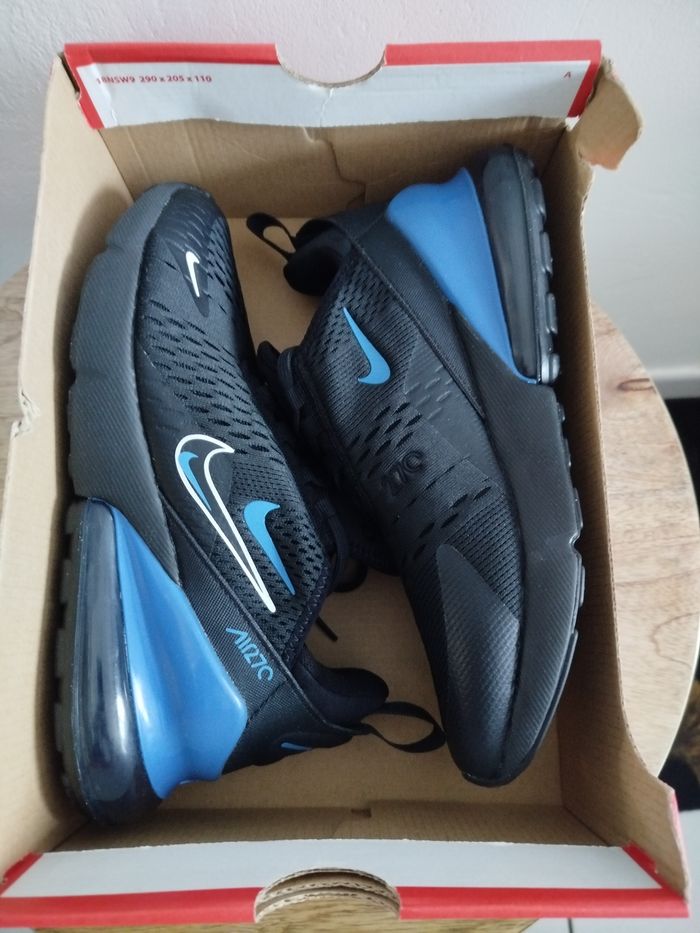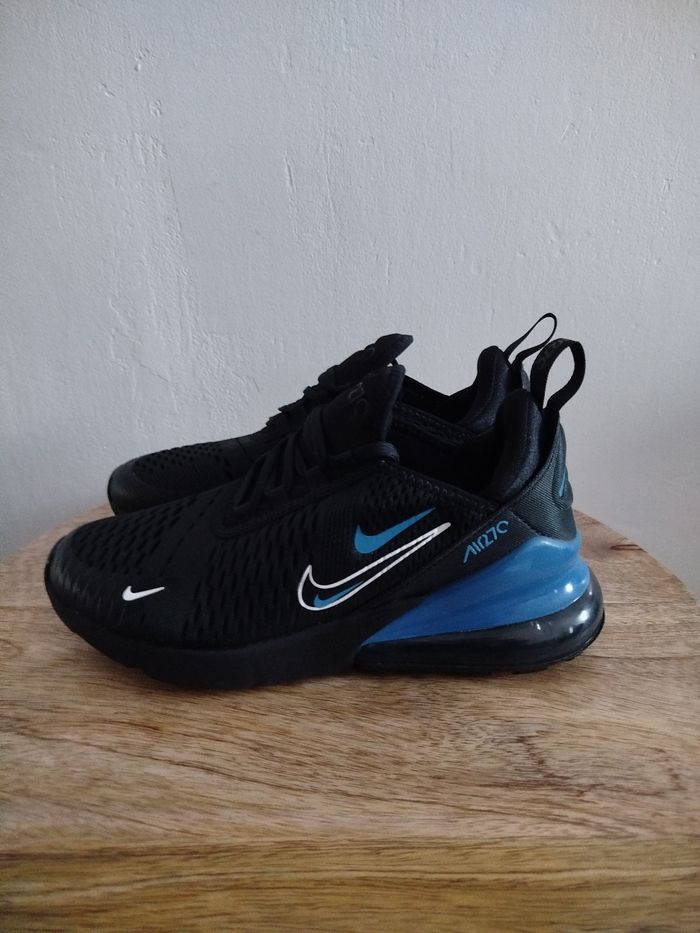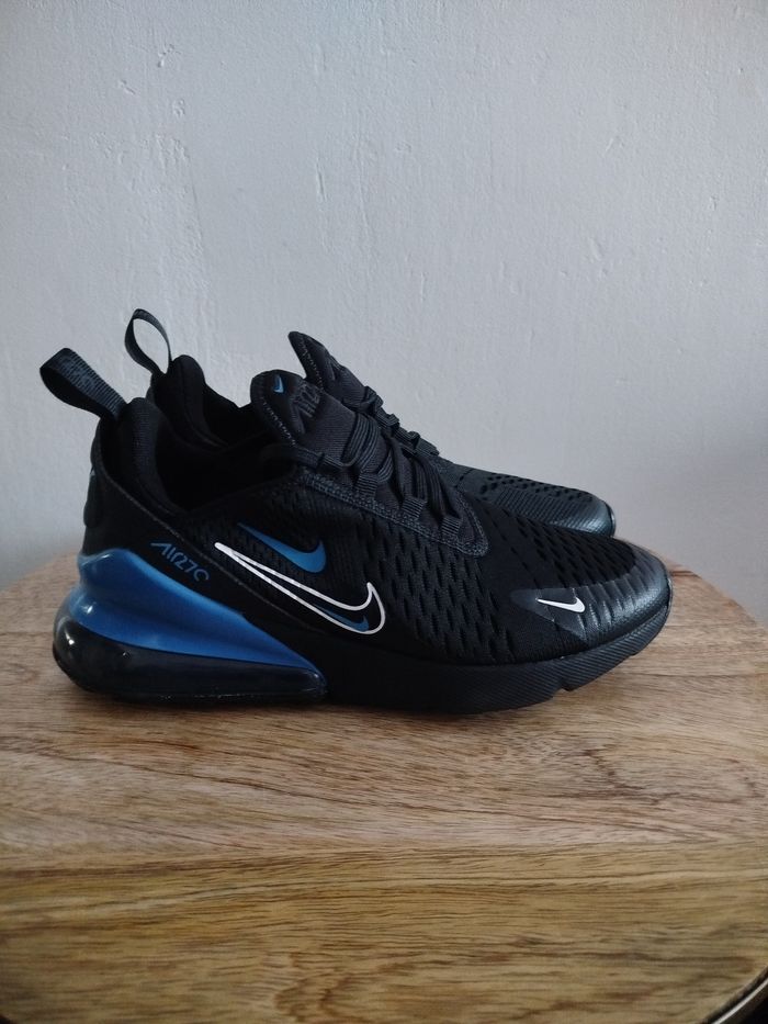 Je vends cette paire de baskets Nike Air max pour enfant. - Type de produit : Baskets - Univers : Homme - Marque : Nike - Modèle : Air max 270 - Pointure :38,5 - Couleur : Noir et Bleu - Etat : Neuf - Boîte sans couvercle N'hésitez pas à me contacter pour plus d'informations ou de photos.