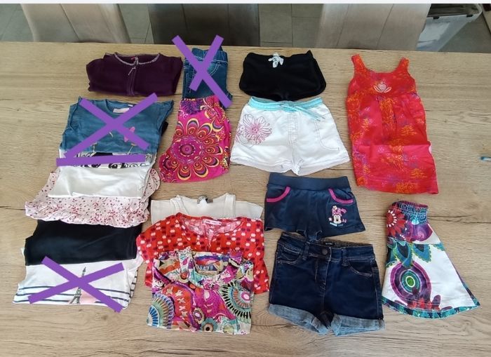Lot vêtements fille 4 ans printemps été automne 14 pièces Lot : 1 jupe desigual, 4 shorts, 1 robe dpam, 3 tee shirt / débardeur, a pantalon fluide, 2 tee shirt manches longues, 1 blouse manche longue, 1 gilet Très bon état, différentes marques : TAO, Gémo, disney, desigual, orchestra, kiabi, dpam Envoi mondial relay