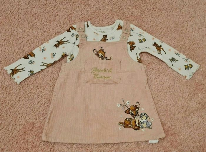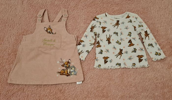 Haut + robe salopette Bambi et Panpan 12 mois