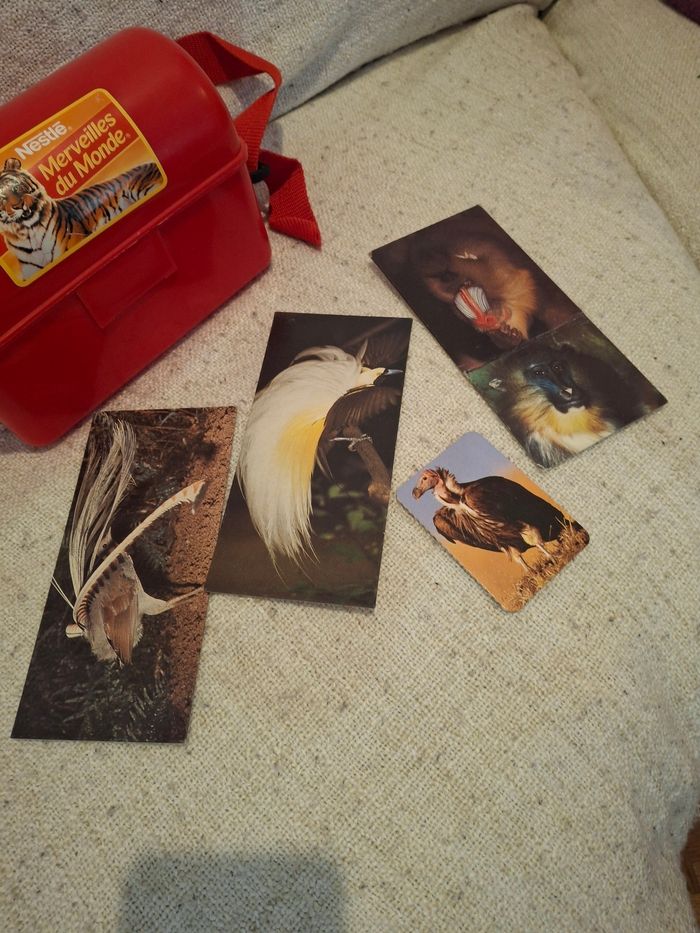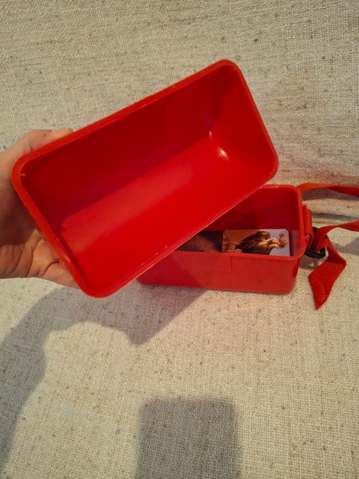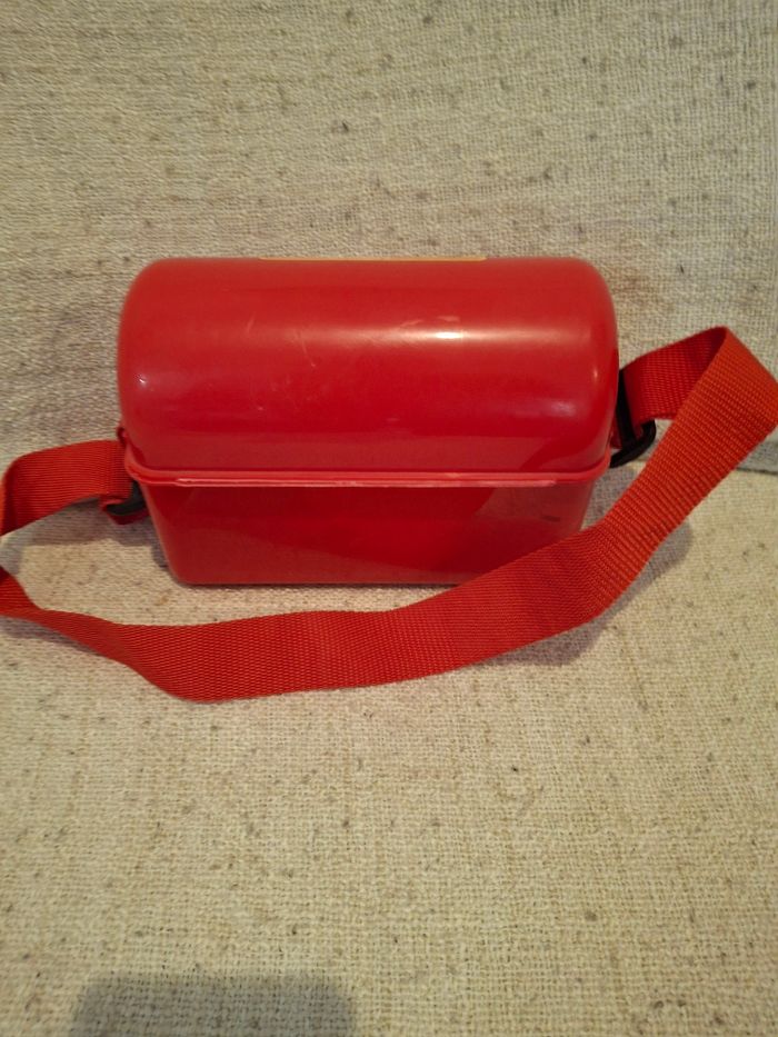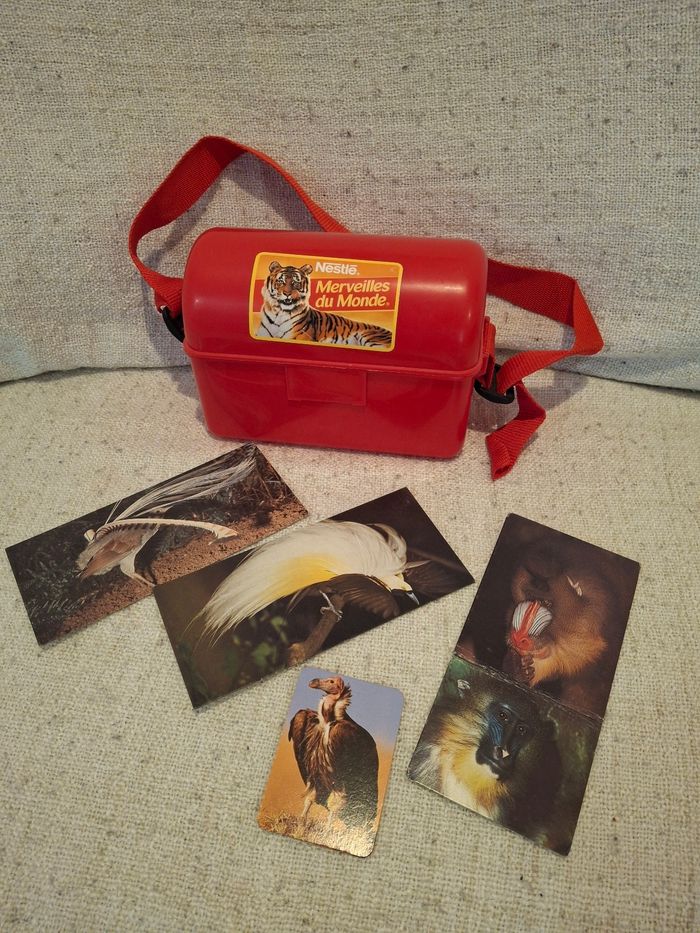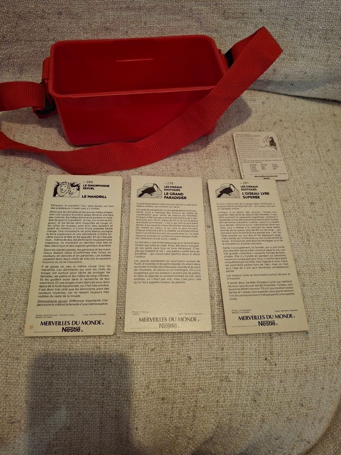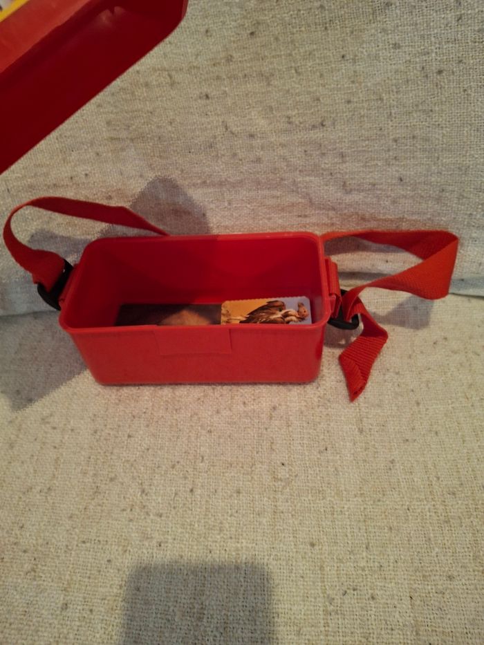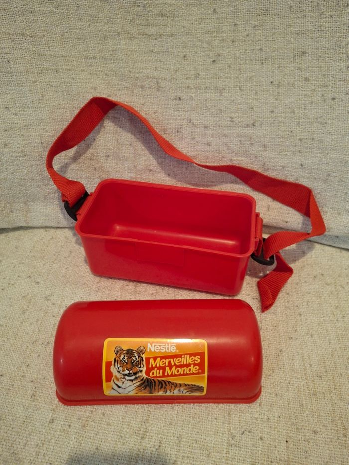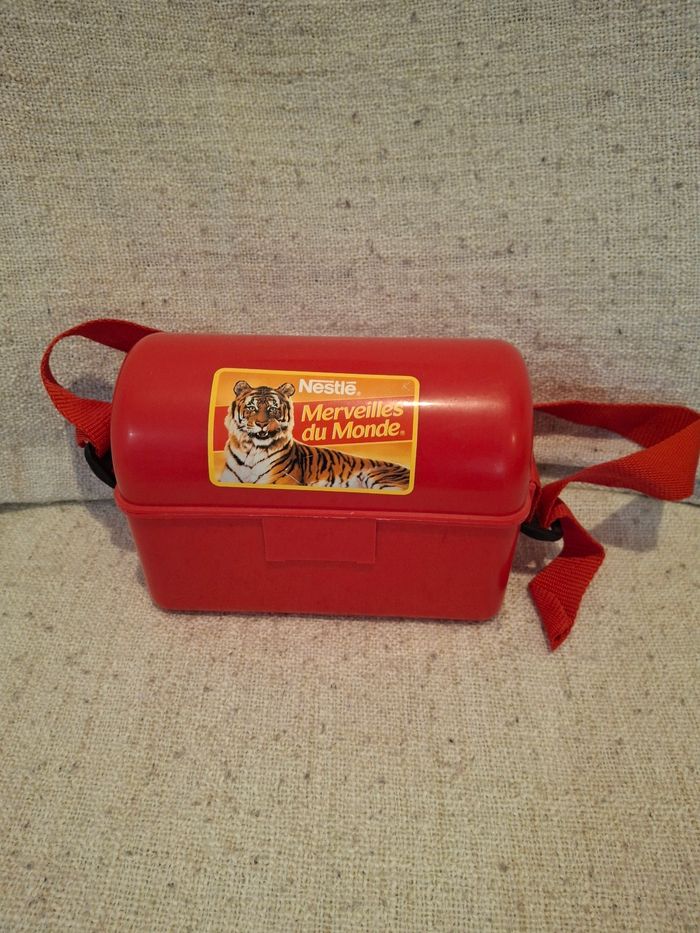 Boite saccoche rouge plastique collector vintage merveilles du monde