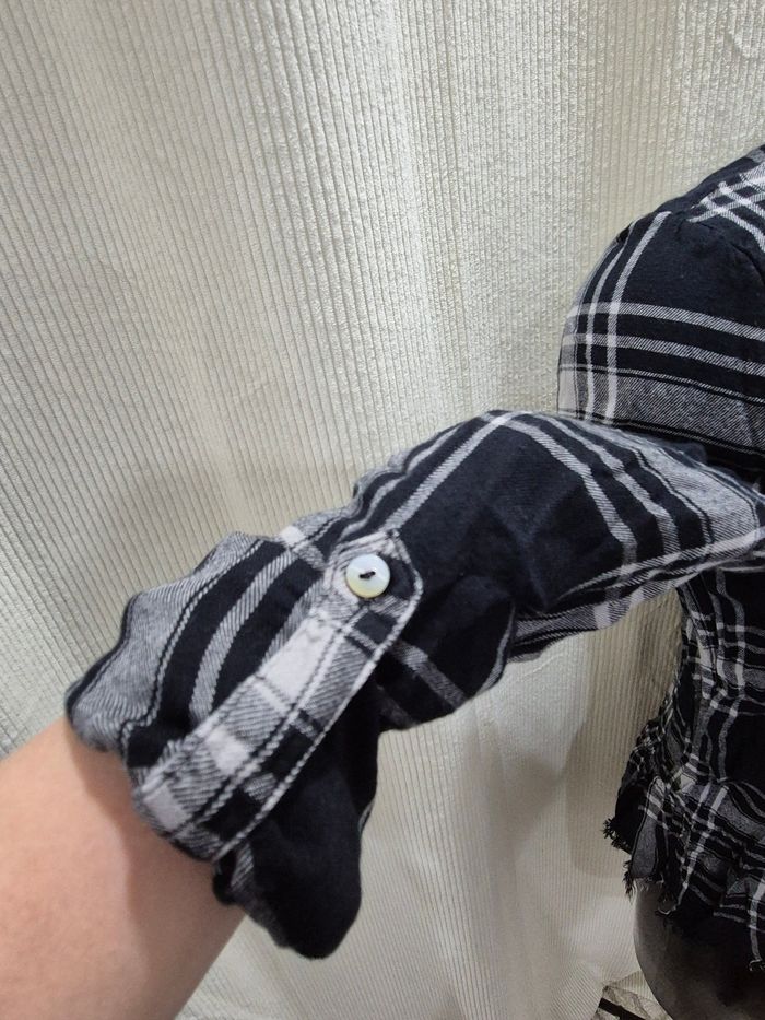 ▪︎Blouse / chemise Gros carreaux tartan noir, blanc et gris anthracite