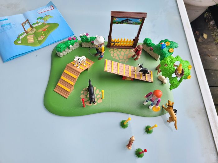 PLAYMOBIL 6145 CENTRE DE DRESSAGE POUR CHIENS Bien éduquer son chien, ce n'est pas difficile en l'emmenant régulièrement au centre de dressage... Espace extérieur aménagé pour les animaux avec trois personnages, cinq chiens d'espèces différentes et d'autres animaux. En très bon état avec notice, sans boite Mes autres playmobils : #playmobilmooglou