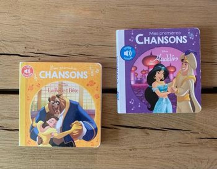 Lot 2 livres sonores mes premières chansons de Disney Aladdin et la belle et la bête état satisfaisant