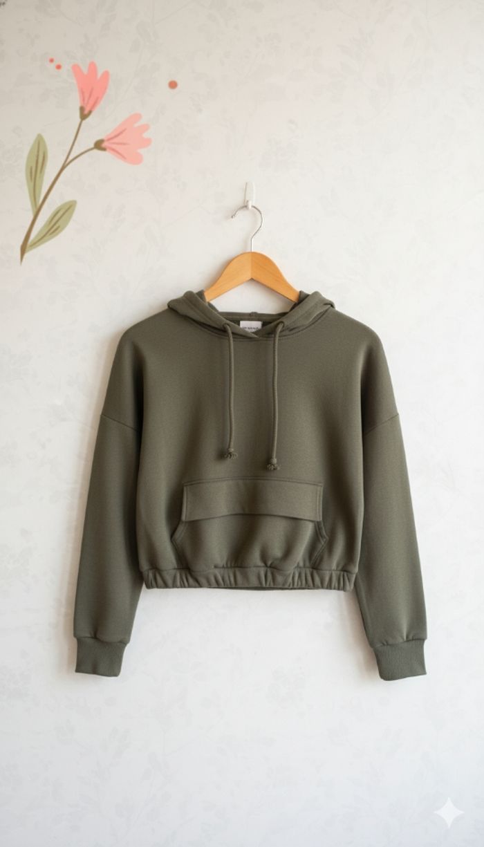 #SweatKaki #CropTopHoodie #SweatCourt #ModeFemme #StyleUrbain #CasualChic #TailleS #KakiFashion #ConfortEtStyle #PenderieDurable #secondemain