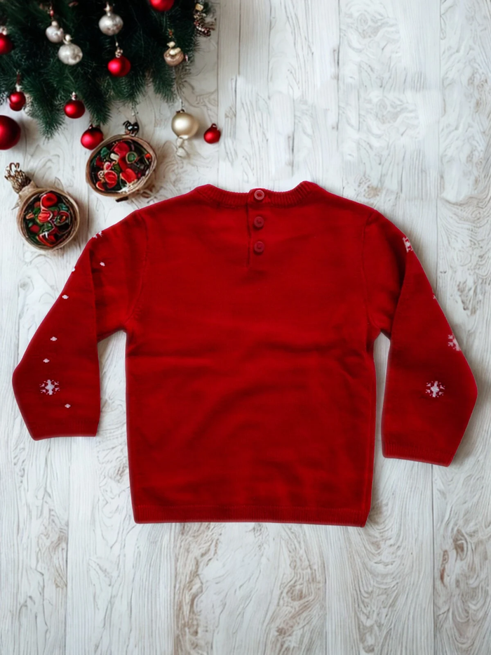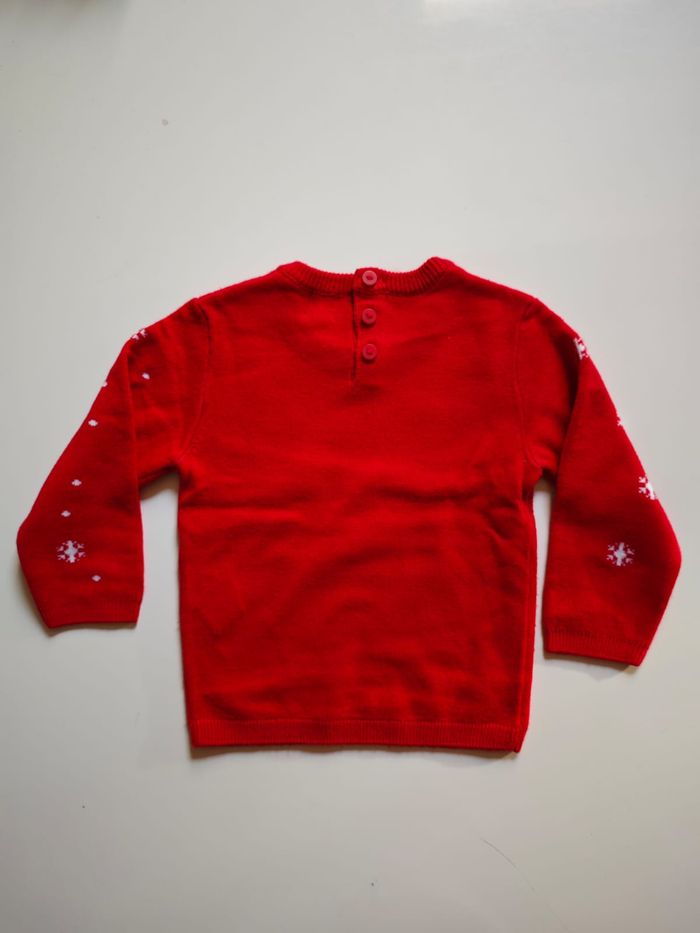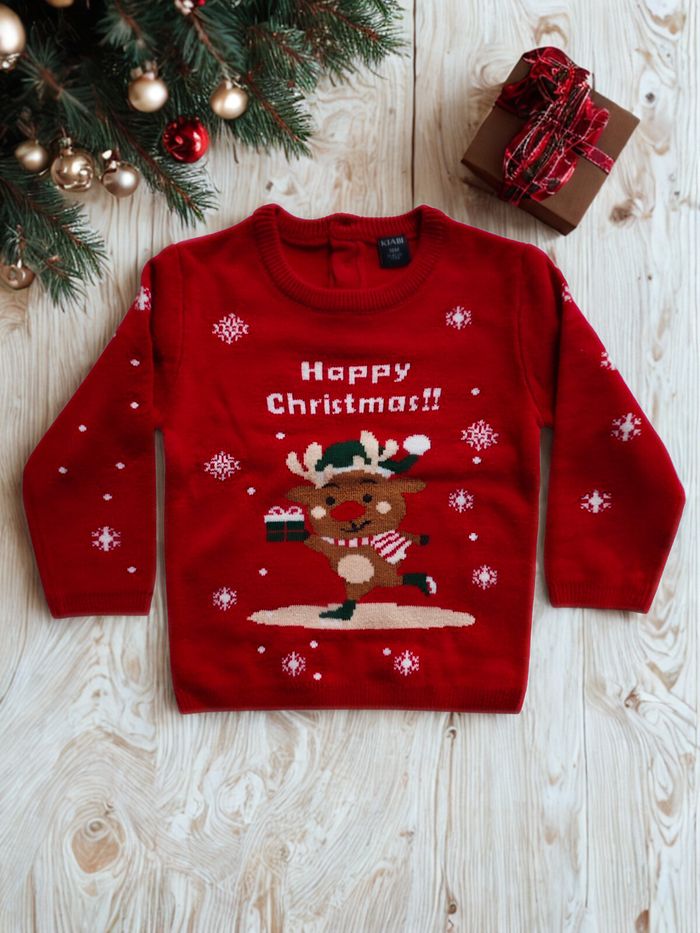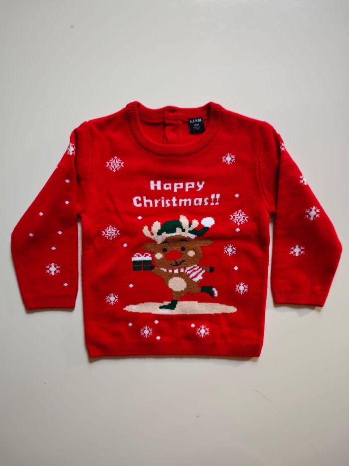 🎄Pull Rouge sur le thème de Noël avec un Renne qui fait du patin à glace. Kiabi
