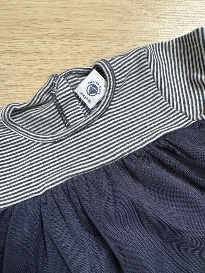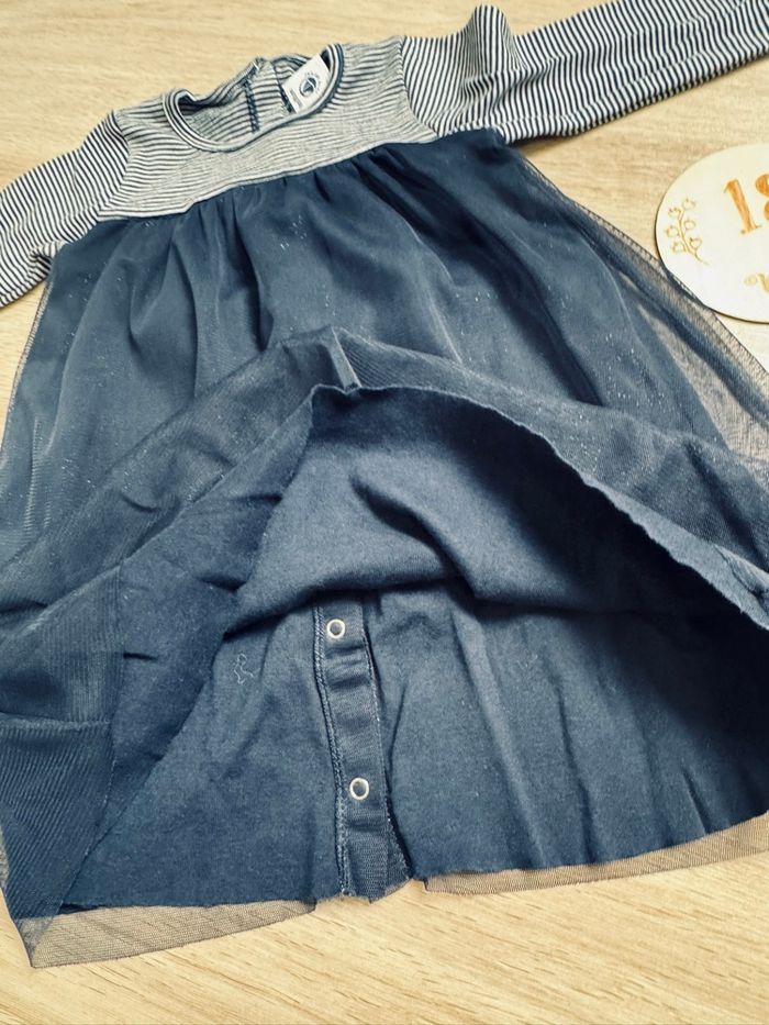 Robe petit bateau Haut marinière, le bas un tulle pailletée avec un doublure 100% coton Taille 18mois/81cm En très bon état
