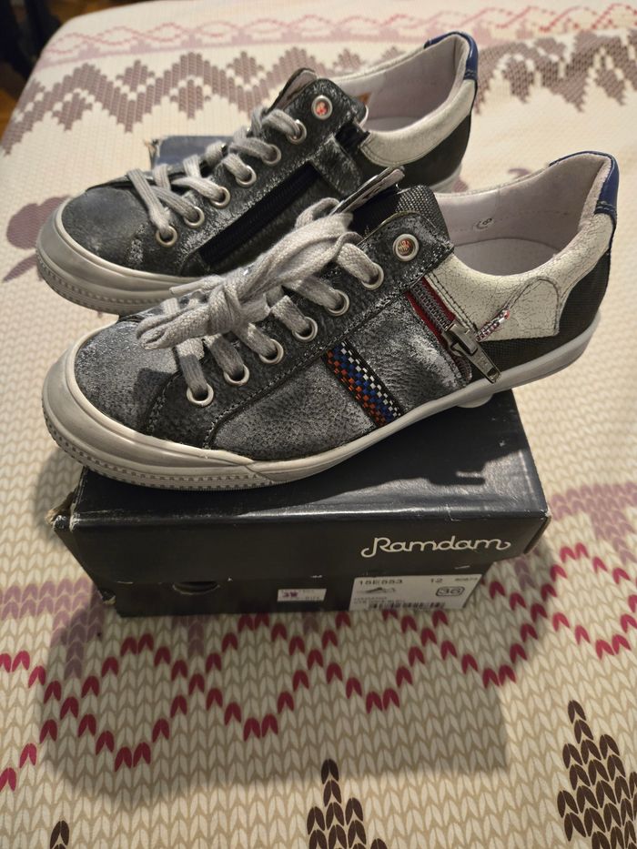 Ramdam neuve en pointure 36 de couleur noir et gris a lacet et velcroc sur le côté. Ce modèle est vendu 99 euro en magasin