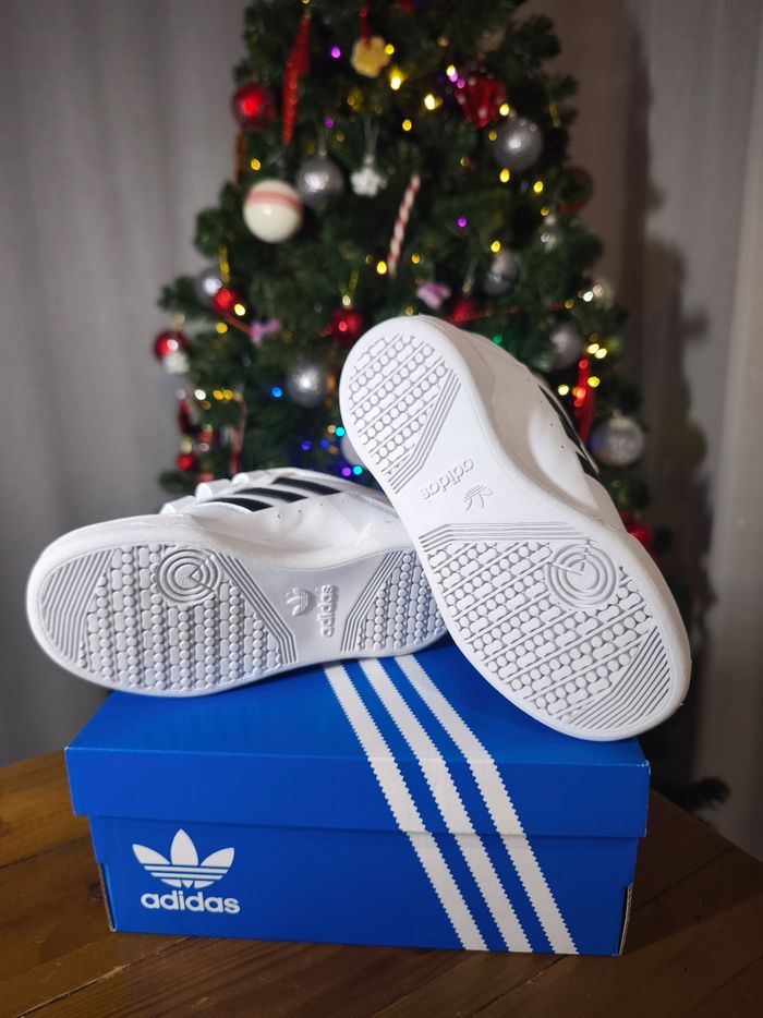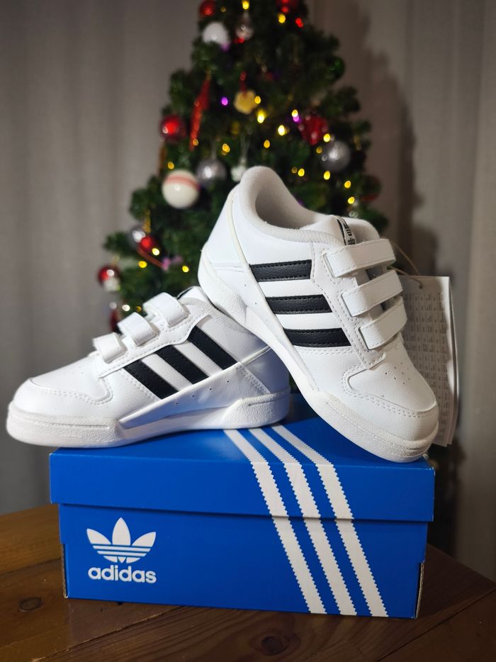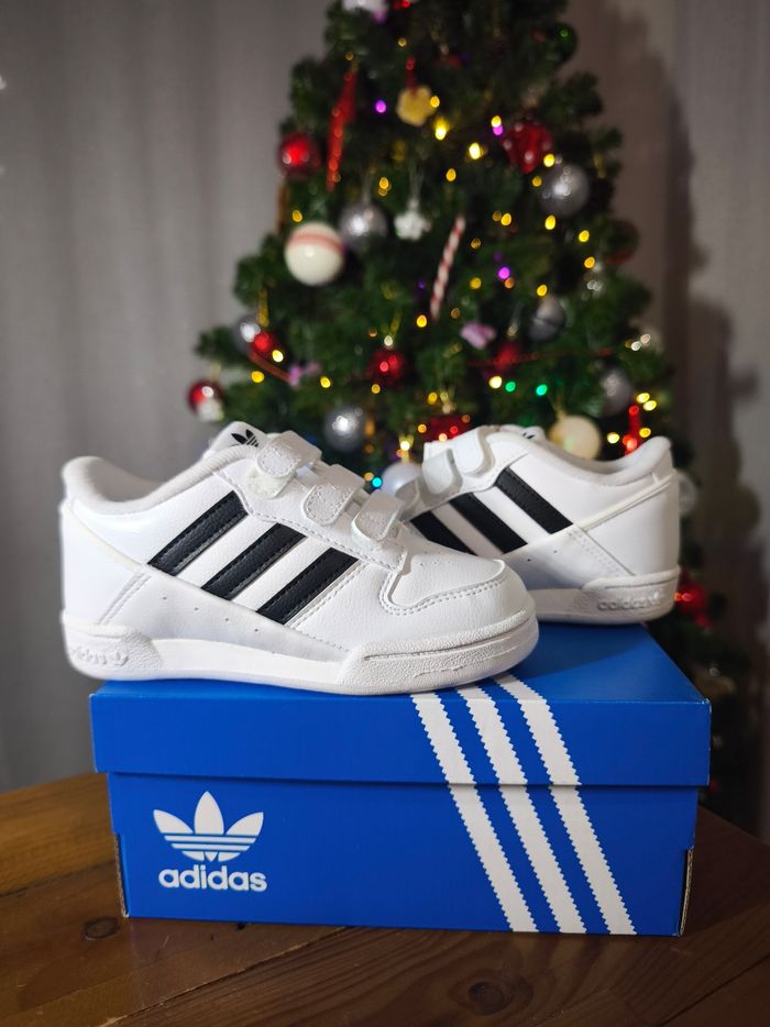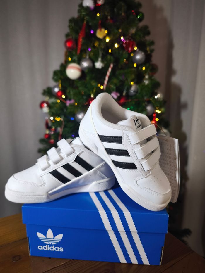 Adidas team court 2 STR CF I Couleur blanc et logo noir Matière cuire Fermeture scratch Taille 26 Produit neuf