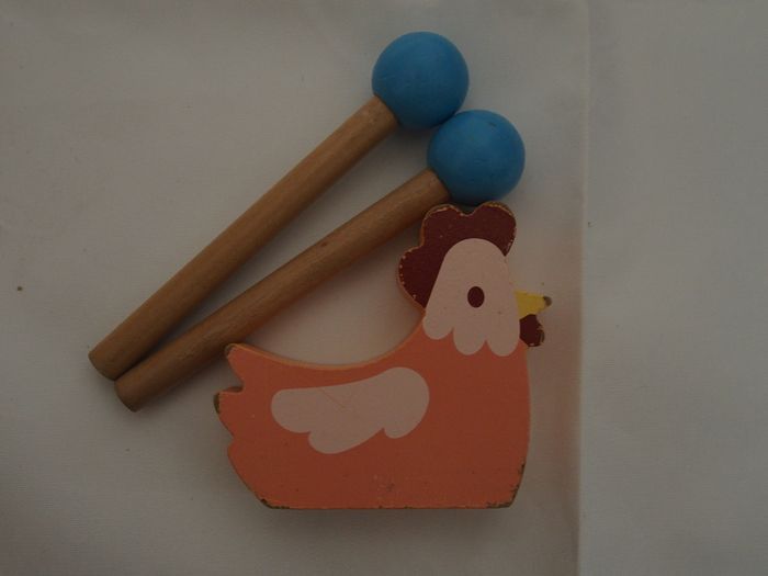 Les bâtons pour le xylophone ne sont pas d'origine, je les ai remplacé car ils ont trop été grignoté par des petites dents !