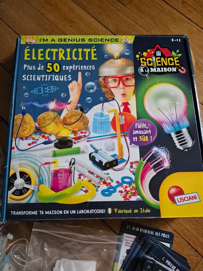 Kit scientifique 'ÉLECTRICITÉ I'M A Genius SCIENCE' – Plus de 50 expériences passionnantes pour transformer ta maison en laboratoire ! Idéal pour les enfants de 8 à 12 ans, facile, amusant et sûr. Fabriqué en Italie par LISCIANI. Parfait état, complet avec tous les composants. N’hésitez pas à me contacter pour plus d’infos !"