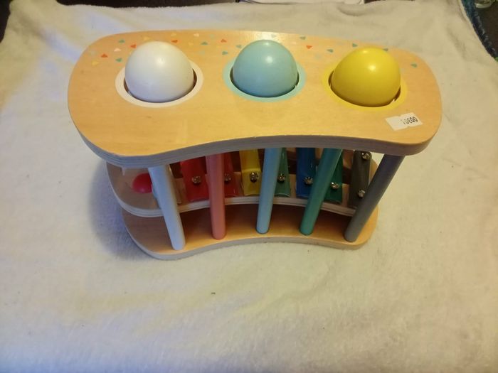 En avant la musique ! Avec cet adorable jeu 2 en 1, votre enfant pourra s'initier au xylophone et jouer au tap tap grâce à sa baguette (presque) magique ! 2 modes de jeu sont possibles. Vous pouvez soit séparer les 2 éléments de jeu, soit les combiner et alors permettre aux boules en bois de déclencher la gamme musicale en tombant sur le xylophone.