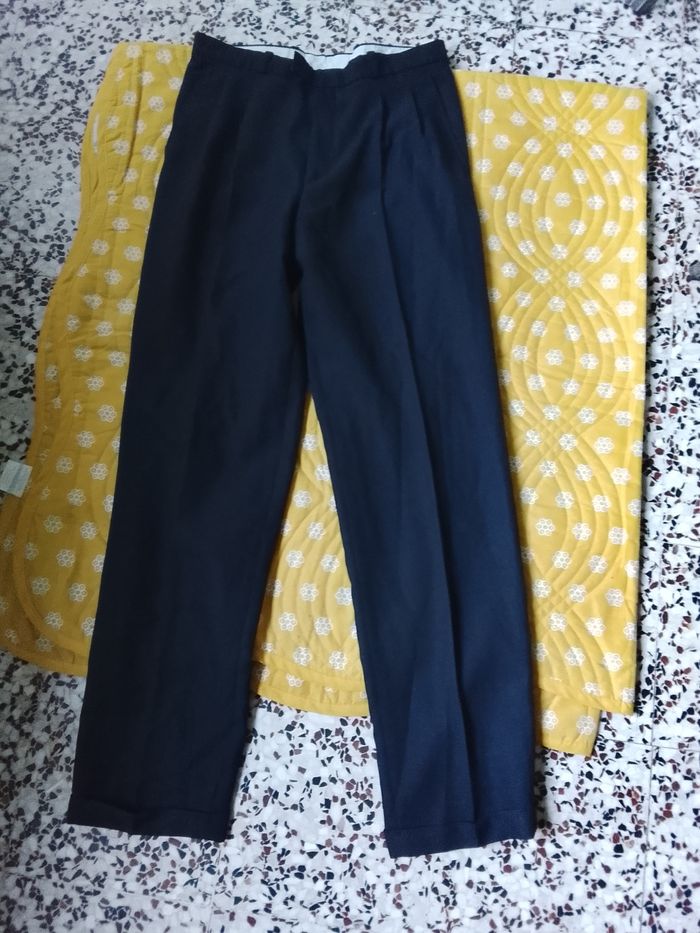 Bonjour, très beau pantalon a offrir pour Noël en taille 40 en noir . Deux poches devant et une derrière . Fermer par fermeture éclair. 100% polyester. En très bon état et sans étiquette : hauteur jambe : 107cm, largeur : 32cm. Pensez a vos cadeaux de fin d'année.