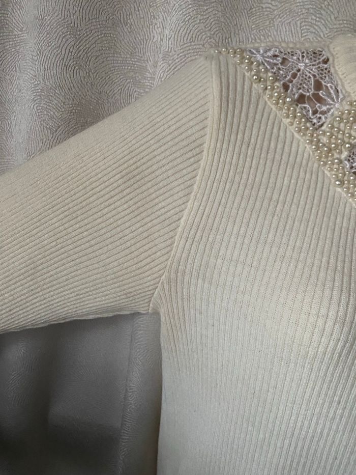 Pull vintage crème dentelle perles taille 3 maille chic - photo numéro 4