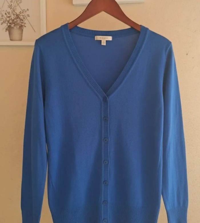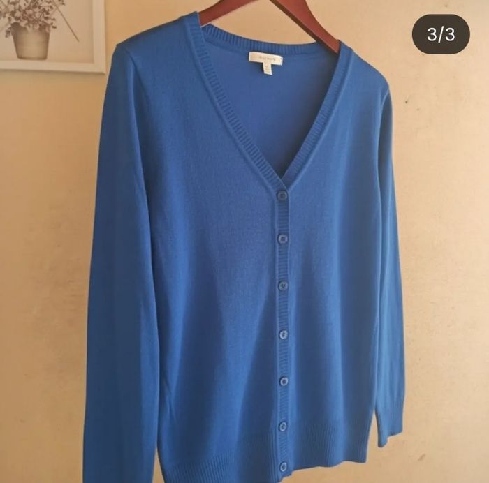 ✨ Pépite à petit prix ! Ce gilet en maille fine 100% Acrylique (T. 38/40) est idéal pour la mi-saison. Sa couleur bleu électrique apporte une touche de pep's à toutes vos tenues.