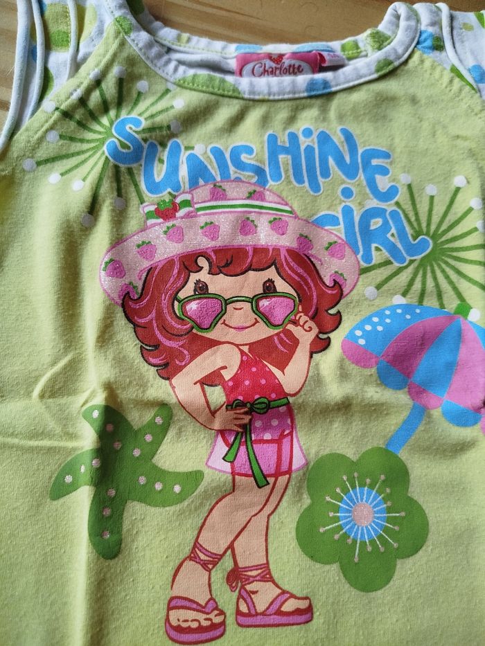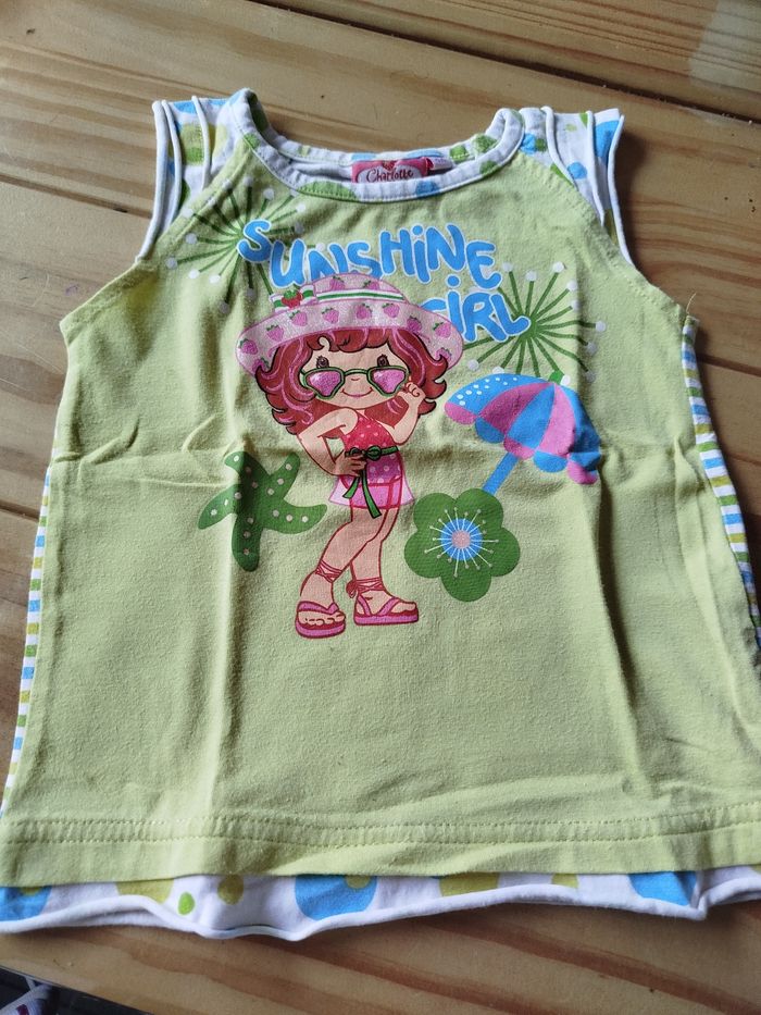 Débardeur vert pâle arrière rayé vert blanc bleu jaune marque charlotte aux fraises taille 4 ans