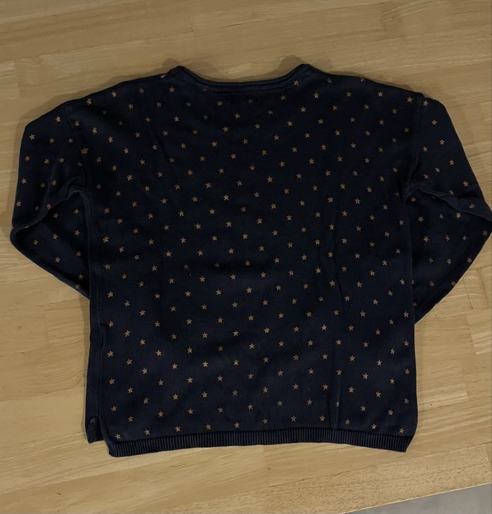 Vends pull col rond à longues manches bleu marine à motifs de petites étoiles, taille 8 ans, de marque In Extenso, en très bon état.