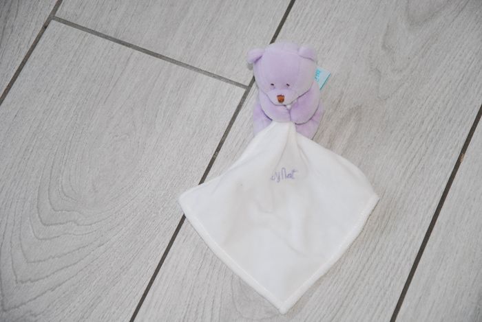 Peluche doudou ours violet baby'nat nabynat velours mouchoir brodé