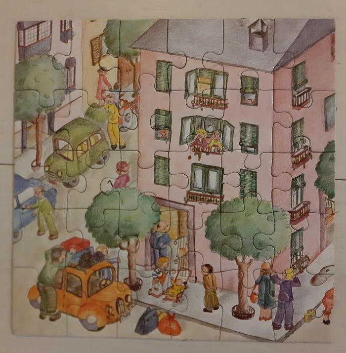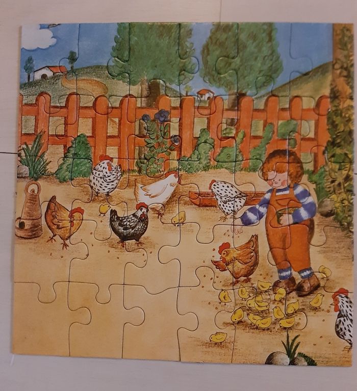 - 2 puzzles de 30 pièces correspondants aux illustrations des livres de Téo dont celui de la ferme