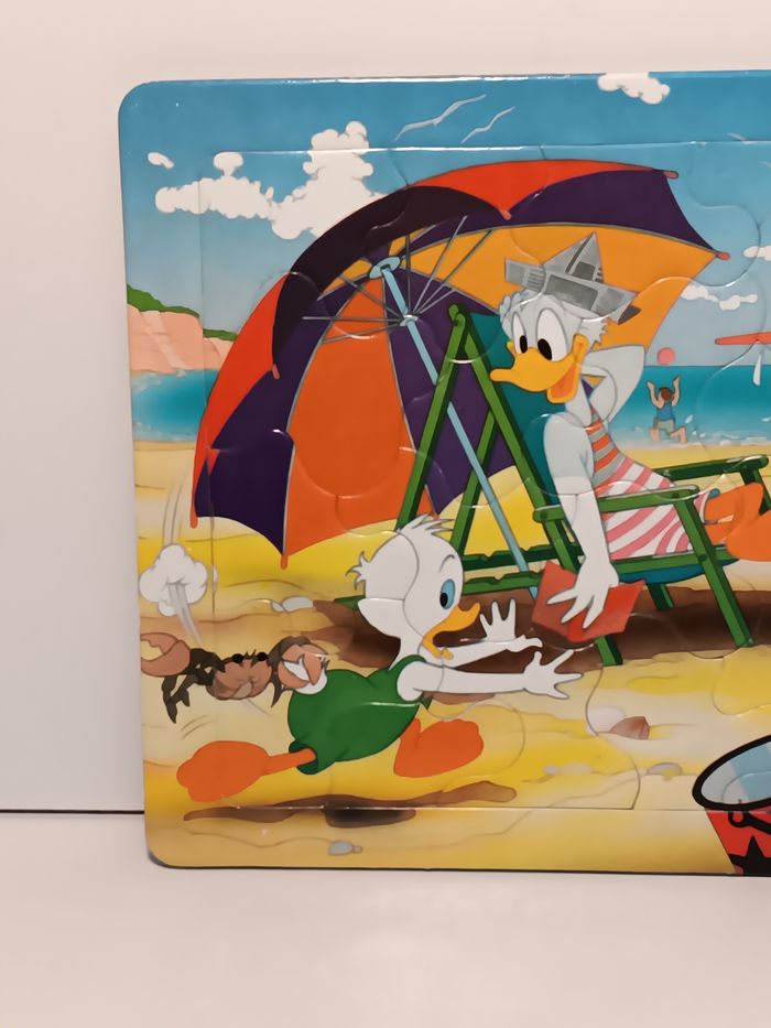 Puzzle vintage Walt Disney sur plaque Donald et ses neveux à la plage