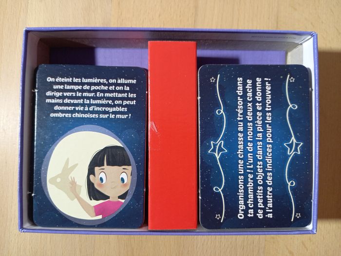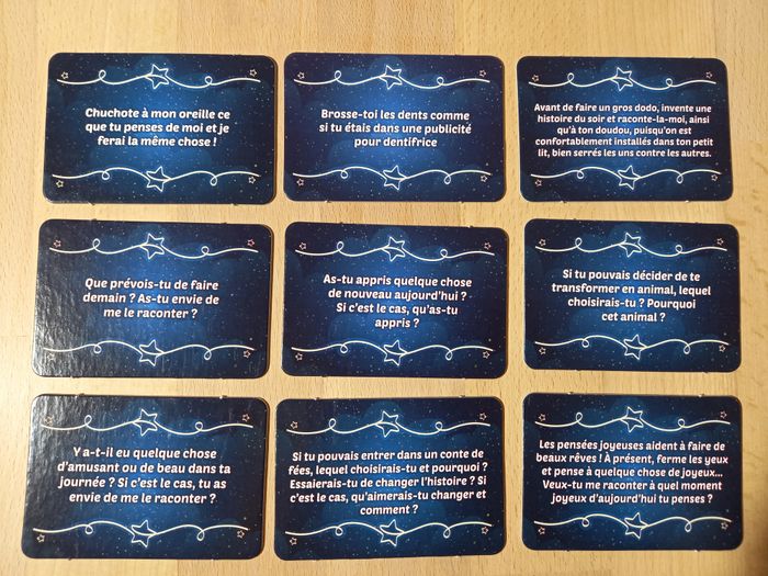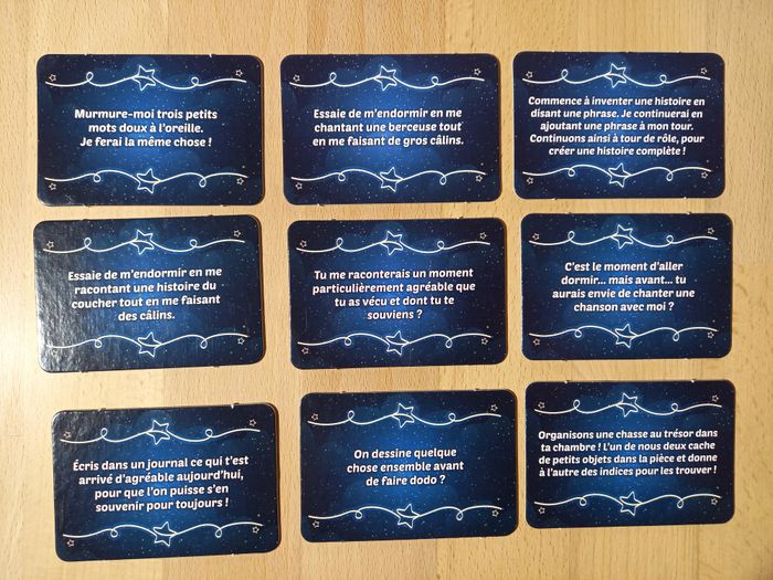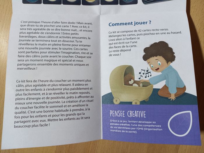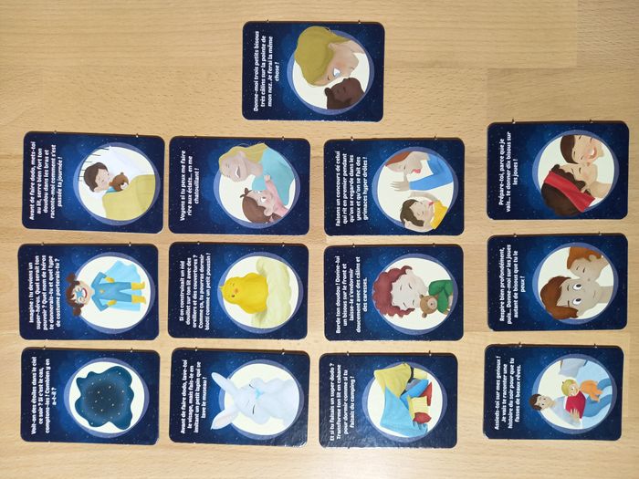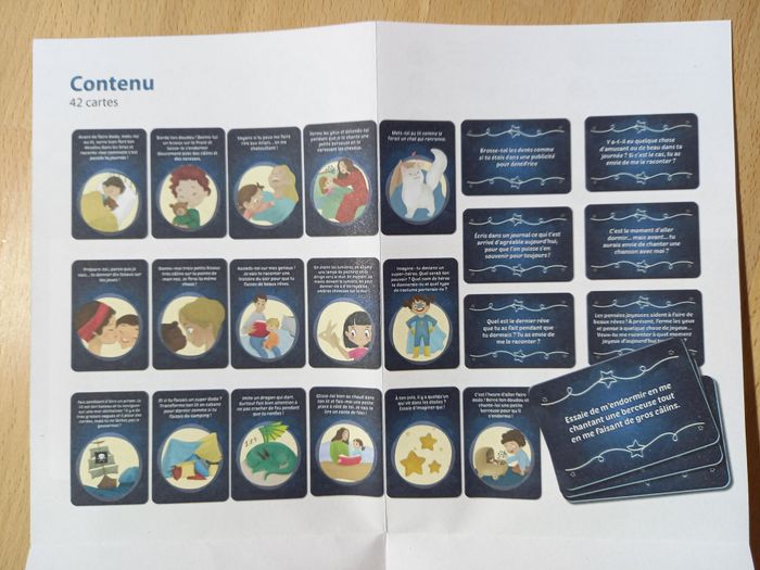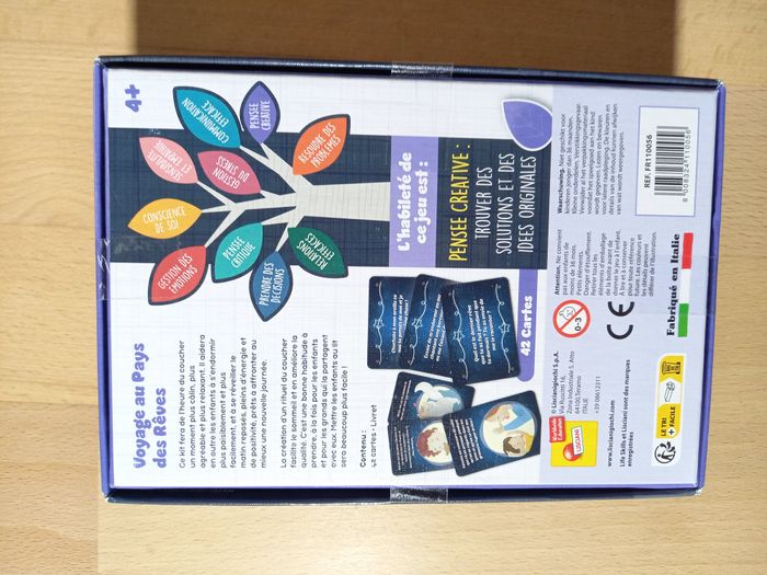 Jeu Voyage au pays des rêves 🌙 Jeu JAMAIS utilisé 🏷 D'autres jeux éducatifs inspirants disponibles! 84 cartes illustrées pour instaurer une routine de coucher rassurante et sans stress. Dès 4 ans 💤​ 🔍Description: 🌙 Rituels du coucher pour enfants : Ce jeu bien-être pour enfant rend le moment du coucher agréable grâce à 84 cartes illustrées à tirer chaque soir pour créer un rituel du coucher apaisant, rassurant et plein d’imagination dès l’âge de 4 ans ⭐ 84 cartes pour des moments magiques: Ce jeu de cartes propose une grande variété d’activités à faire avant de dormir pour transformer la routine du soir en une activité calme avec des cartes de haute qualité et colorées. ✨ Développe l'autonomie et la logique : Les enfants peuvent choisir eux-mêmes une carte, suivre les instructions simples et vivre un moment ludique qui encourage le jeu en développant l'autonomie tout en stimulant leur logique et leur imagination. 🌙 Activités apaisantes avant le dodo : Chaque carte rend l’endormissement plus agréable avec des idées tendres à partager, favorisant le bien-être de l'enfant.