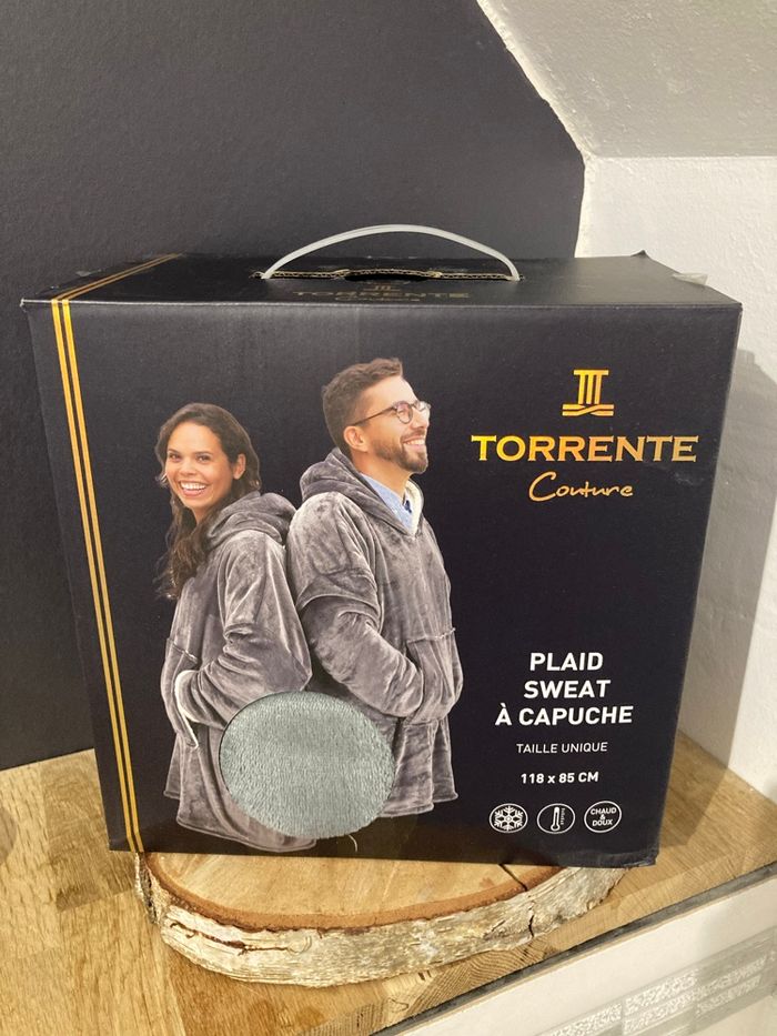 Je vends ce plaid sweat shirt tout doux de la marque Torrente, en taille unique et mixte, neuf dans son emballage.