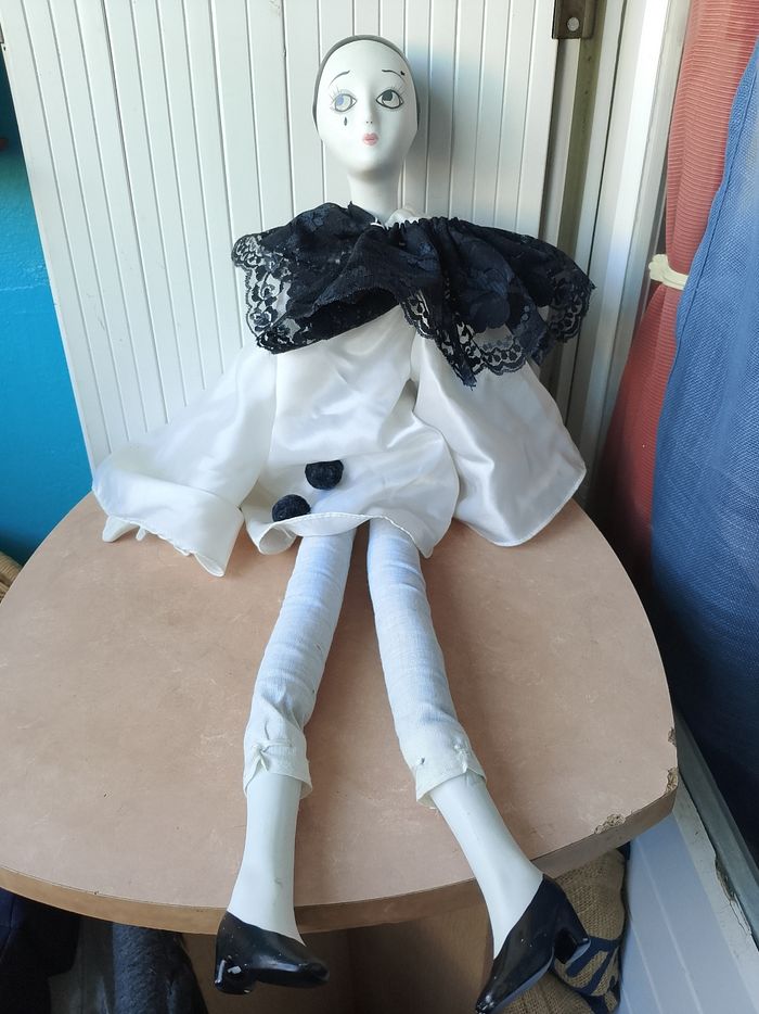 Ancienne Poupée en porcelaine blanche PIERROT Hauteur 53 cm