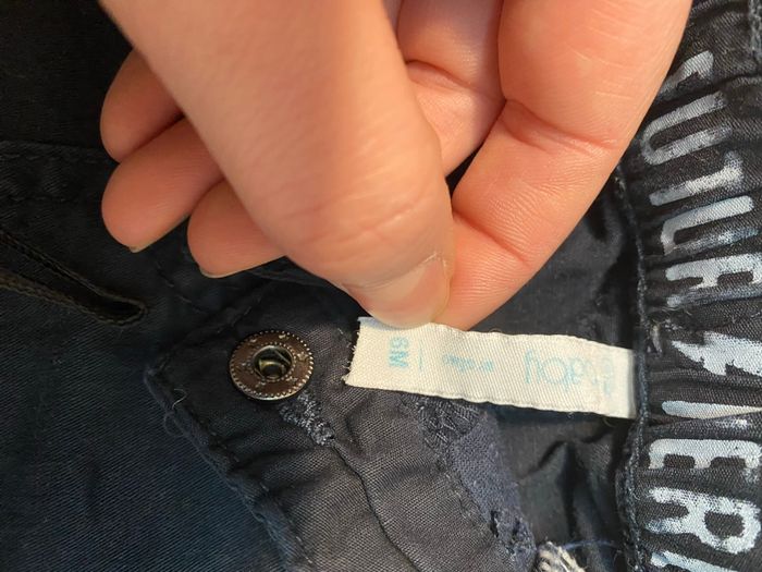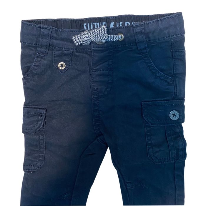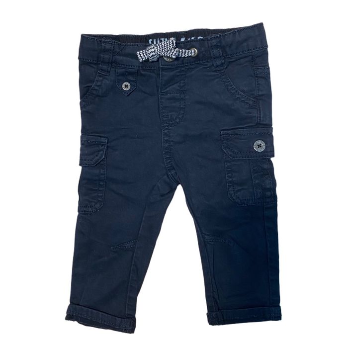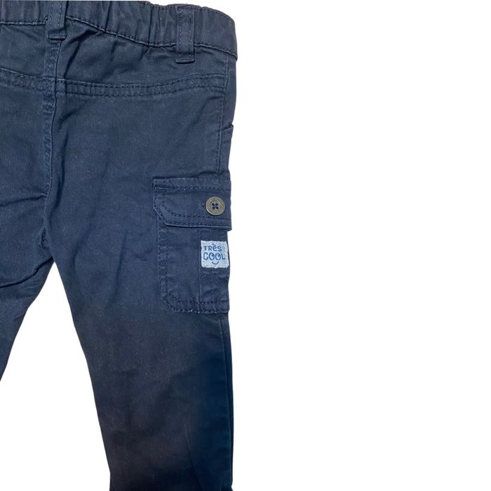 Pantalon cargo de couleur bleu marine Ouverture/ fermeture 1 bouton pression Taille 6 mois Marque Gémo En très bon état