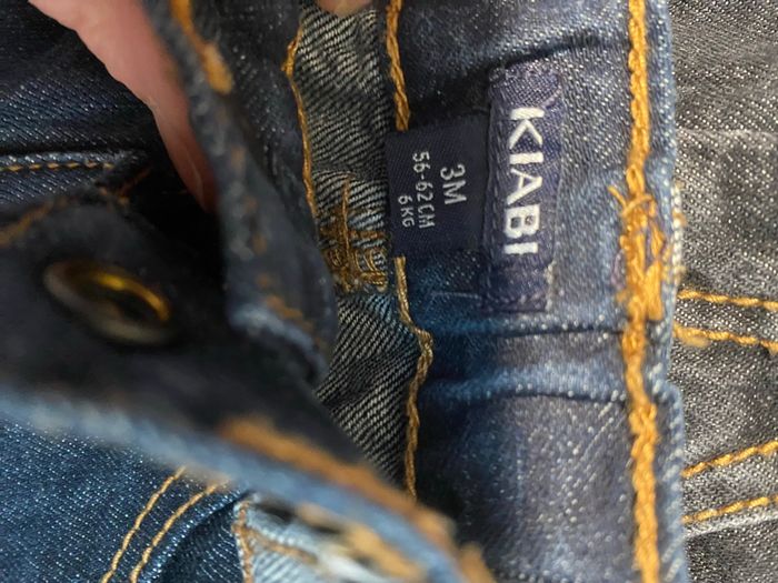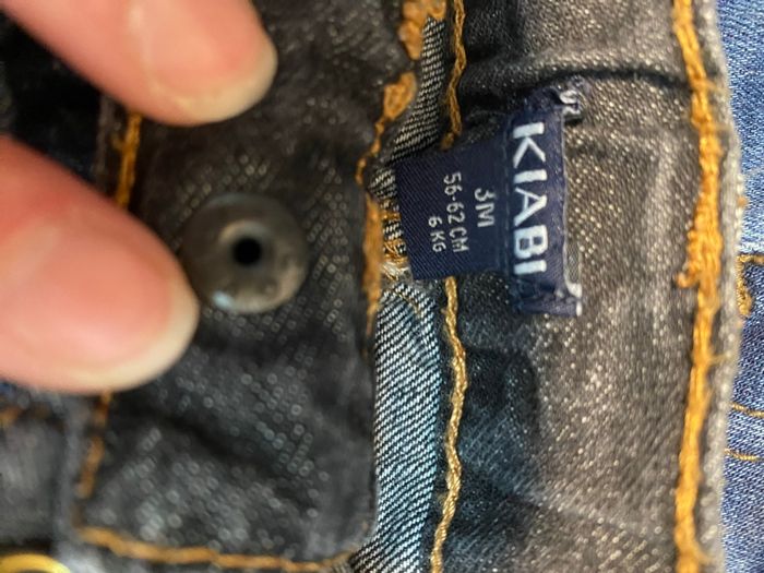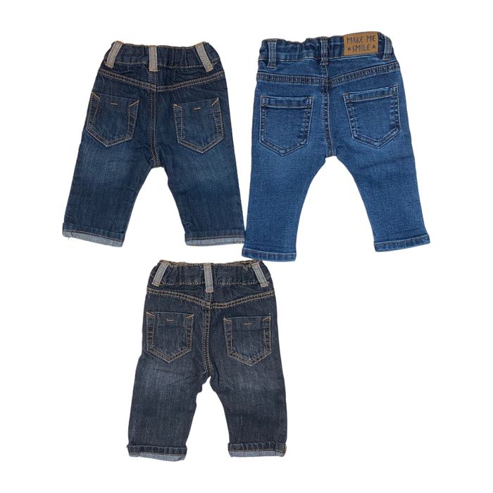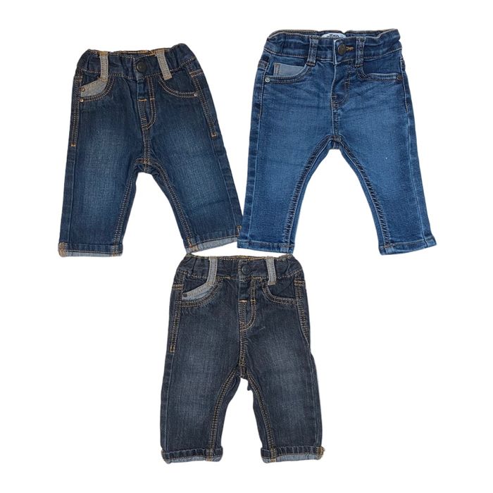 Lots de 3 pantalons jeans , ouverture/fermeture avec 1 bouton pression Taille 3 mois Marque 2 Kiabi et 1 Gémo En très bon état