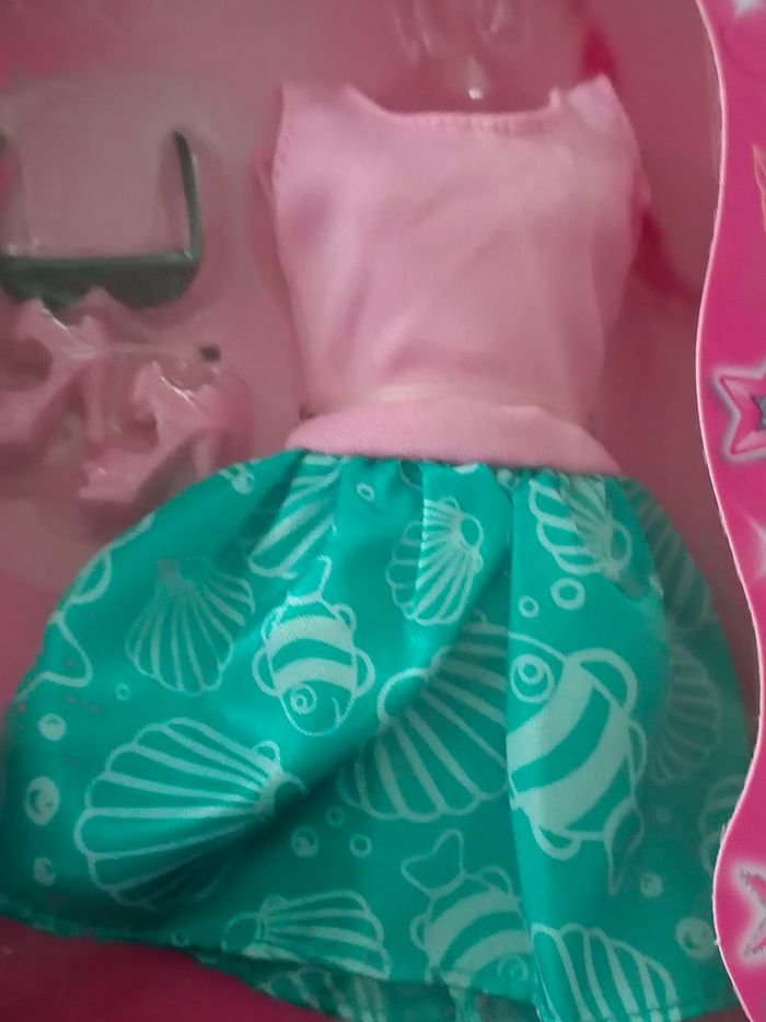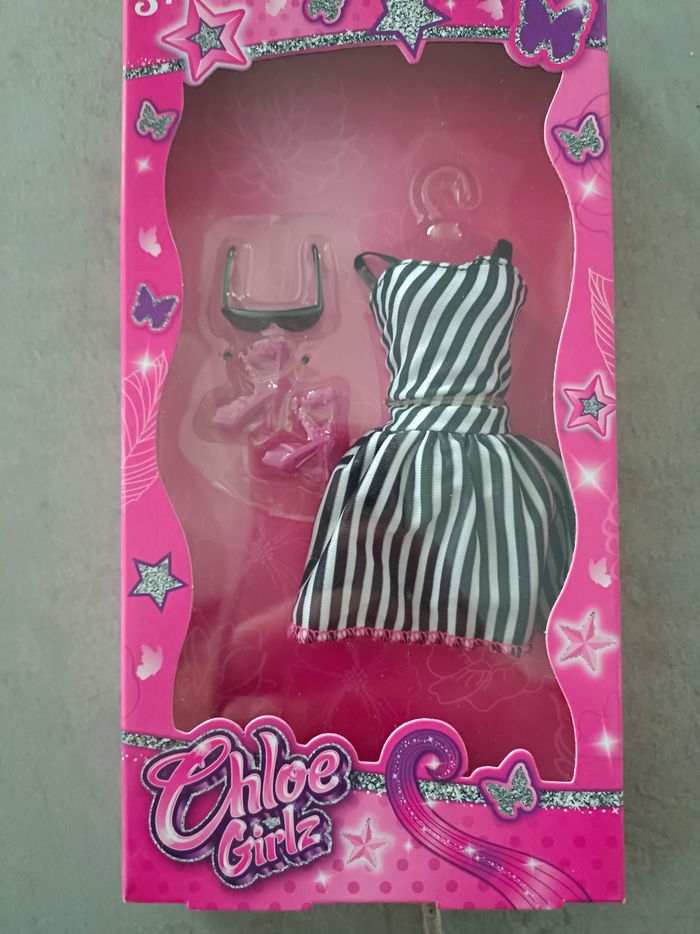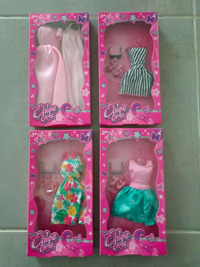 🚨Lot indissociable ⛔ Je ne réponds plus aux demandes d'achat à l'unité - Robe de mariée et son voile - Robe fleurs d'hibiscus, chaussures et lunettes de soleil - Robe à rayures, chaussures et lunettes de soleil - Robe coquillages et poissons, chaussures et lunettes de soleil #jeuxjouetscamilled974 #cadeaudenoelcamilled974 #cadeaudanniversairecamilled974
