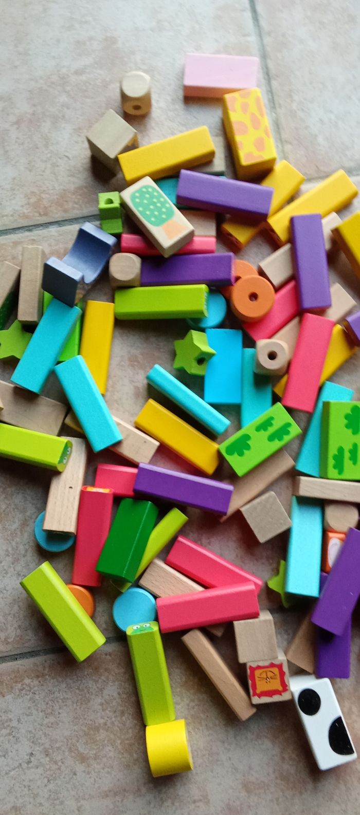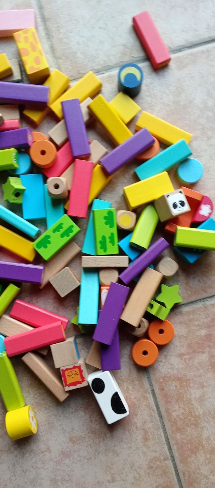 Des formes et des couleurs différentes des dessins sur certaines pièces on peut faire pleins de choses pour créer construire empiler regrouper