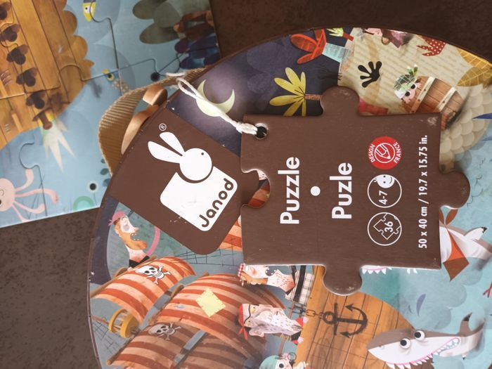 puzzle janod 50cm sur 40cm 36 pieces 4 ans 5ans 6ans 7ans garcon pirate bateau