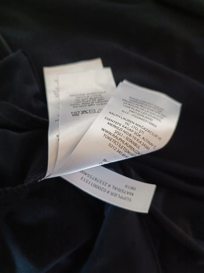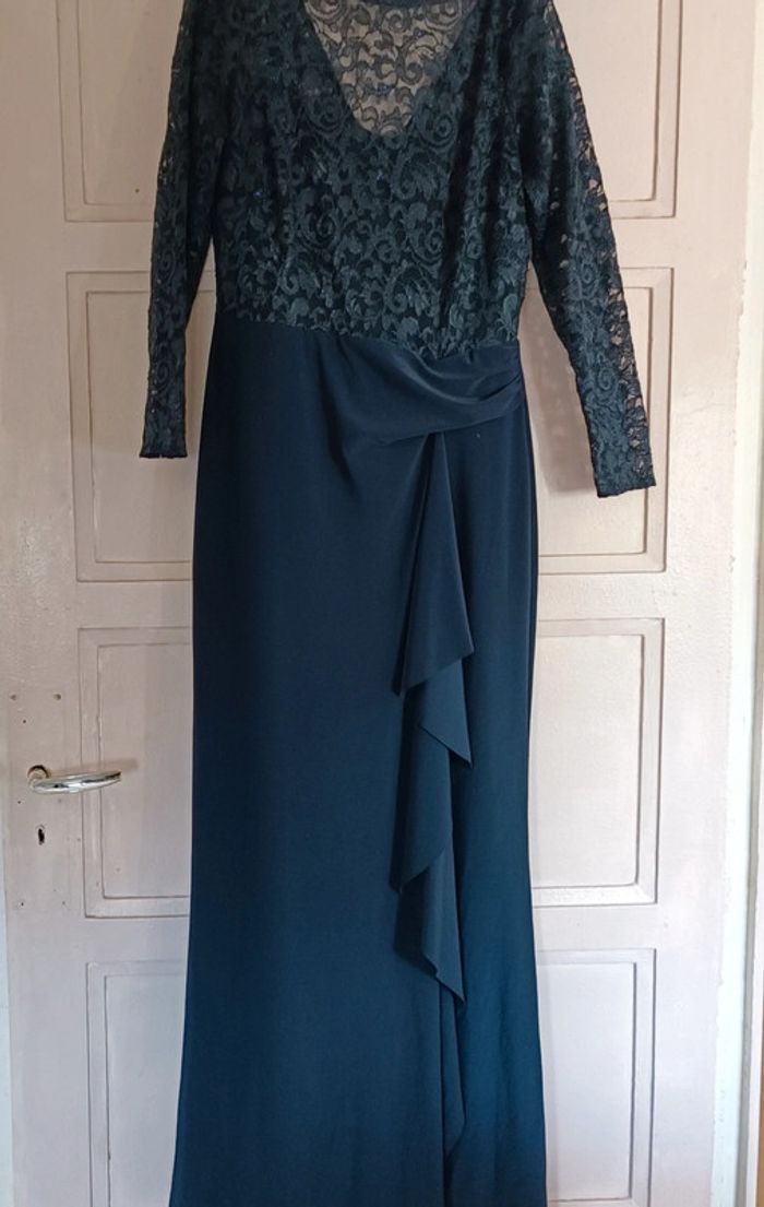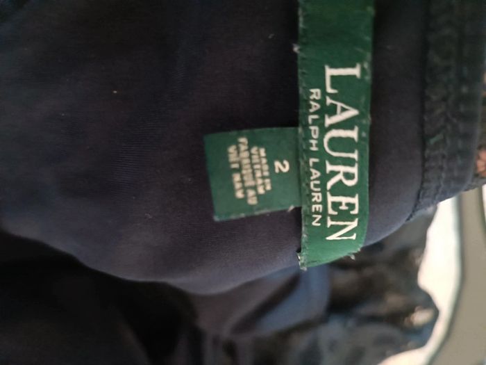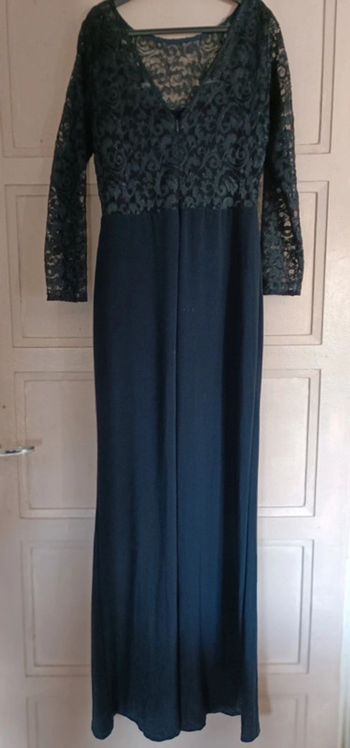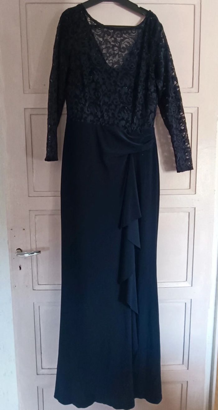 Vends robe de soirée Ralph Lauren, portée 1 fois lors d' un événement. Elle est comme neuve . Longueur (des épaules jusqu’au bas de la robe) 152 cm Détails :dentelle, jersey, paillettes, couleur unie avec applications, col rond, manches longues, intérieur entièrement doublé, fermeture avec agrafes, zip, sans poche, tissu élastique, tournure ample
