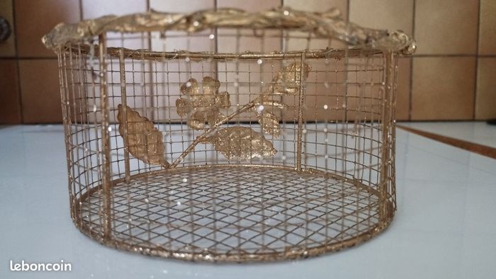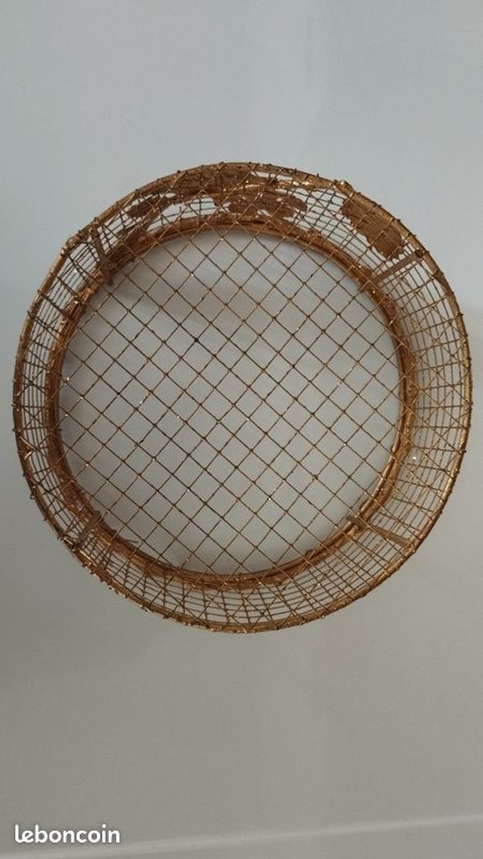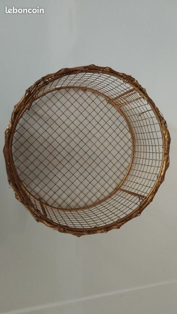 Petit panier, corbeille, vide poche.....grillagé doré, jamais utilisé. Diamètre 13.5cm sur 6.5cm de hauteur.