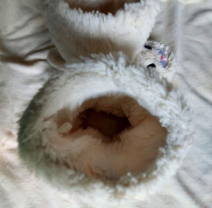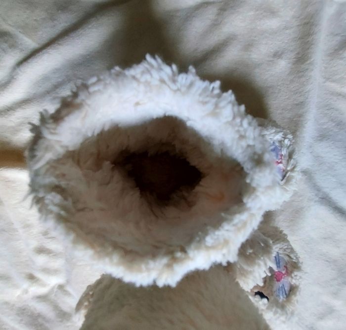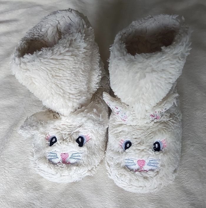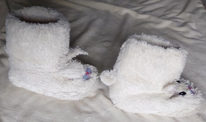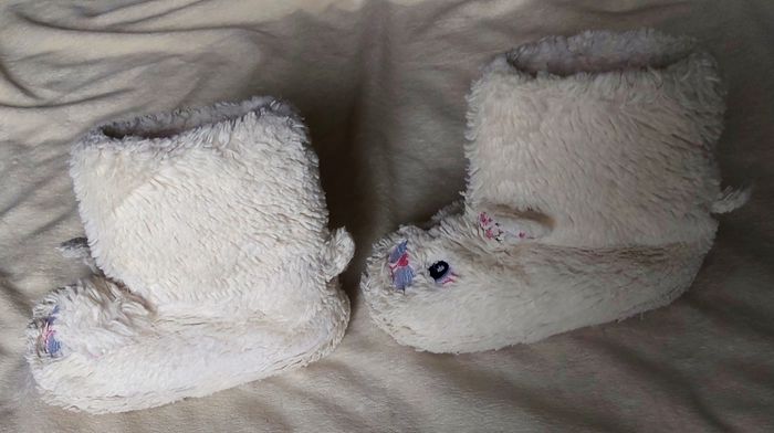 Je vends cette paire de chaussons lapin blanc pour enfant.