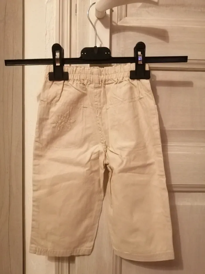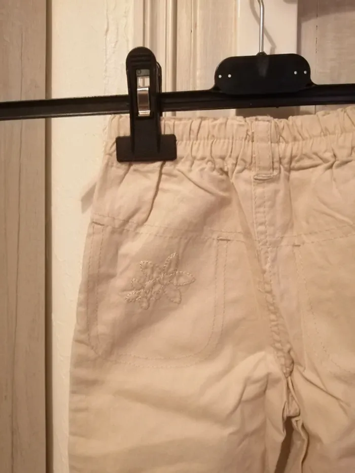 Pantalon bébé fille Taille élastique 2 petites poches 12 mois (74cm) Petites fleurs brodées à l'arrière