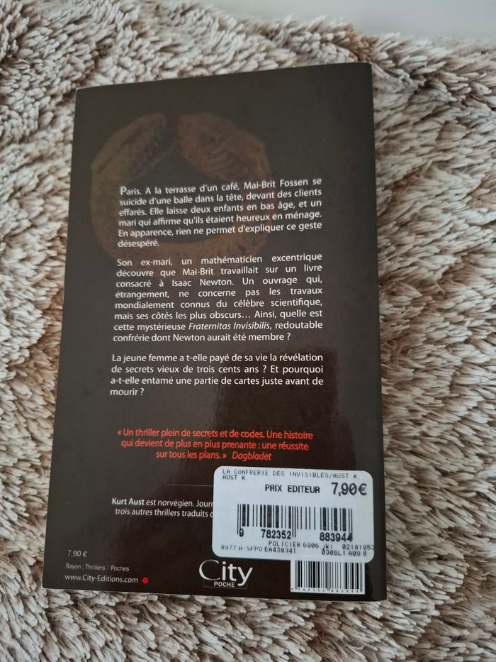 Paris. A la terrasse d'un café, Mai-Brit Fossen se suicide d'une balle dans la tête, devant des clients effarés. Elle laisse deux enfants en bas âge, et un mari qui affirme qu'ils étaient heureux en ménage. En apparence, rien ne permet d'expliquer ce geste désespéré. Son ex-mari, un mathématicien excentrique découvre que Mai-Brit travaillait sur un livre consacré à Isaac Newton. Un ouvrage qui, étrangement, ne concerne pas les travaux mondialement connus du célèbre scientifique, mais ses côtés les plus obscurs.. Ainsi, quelle est cette mystérieuse Fraternitas Invisibilis, redoutable confrérie dont Newton aurait été membre ? La jeune femme a t-elle payé de sa vie la révélation de secrets vieux de trois cents ans ? Et pourquoi a-t-elle entamé une partie de cartes juste avant de mourir ?