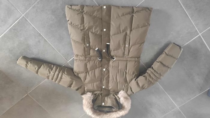 Quelques tâches sur la partie haute, voir photos. Une fois fermé, se voit peu et avec une echarpe, pas du tout.