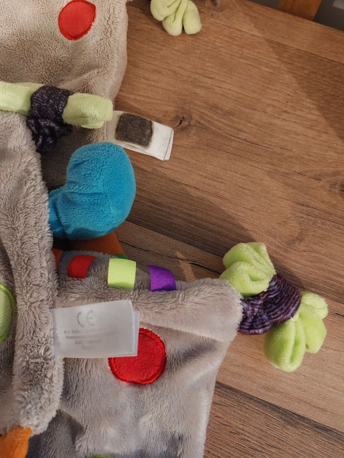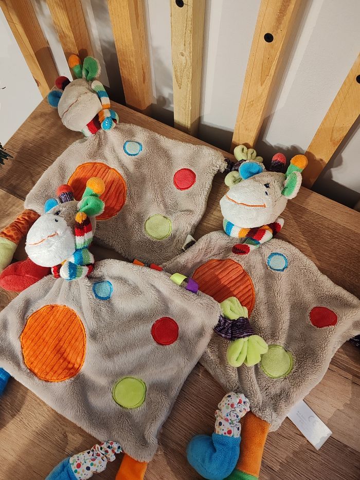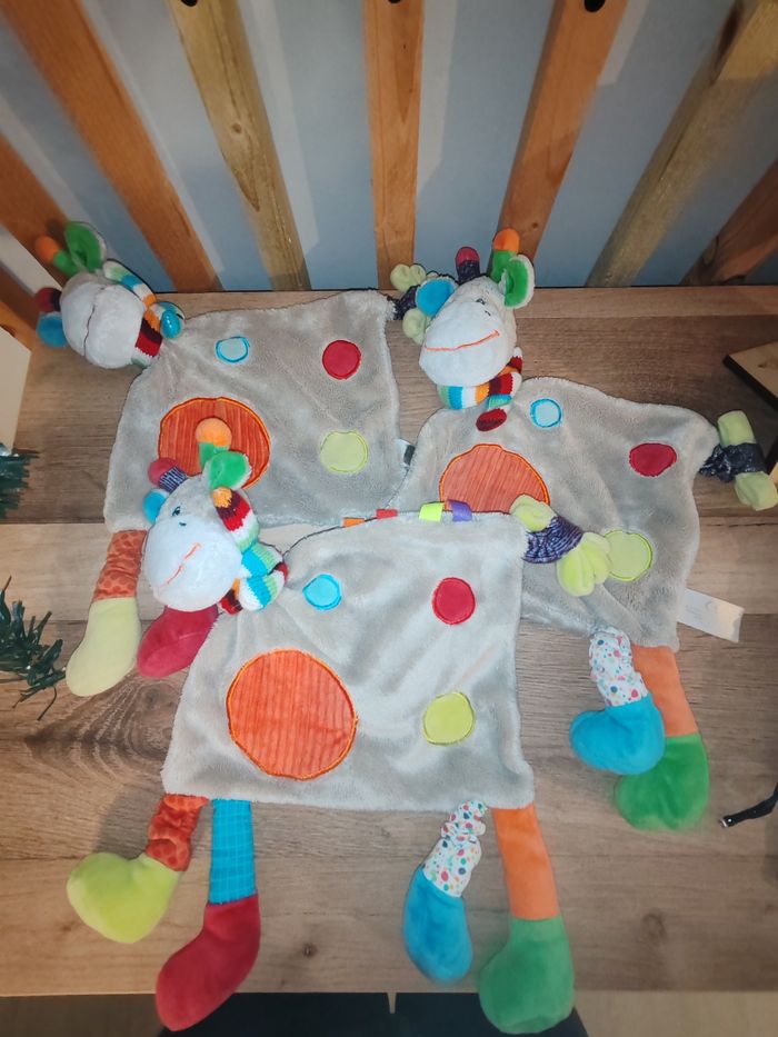 Doudou plat Girafe beige rond rouge Echarpe Simba Toys Tbe Étiquette marque présente sur 2 des 3 28 euros le lot Envoi en relais