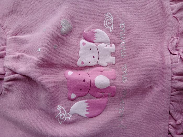 robe couleur lilas, assez épaisse, marque LES BEBES, avec un message d'amour j'adore ma maman